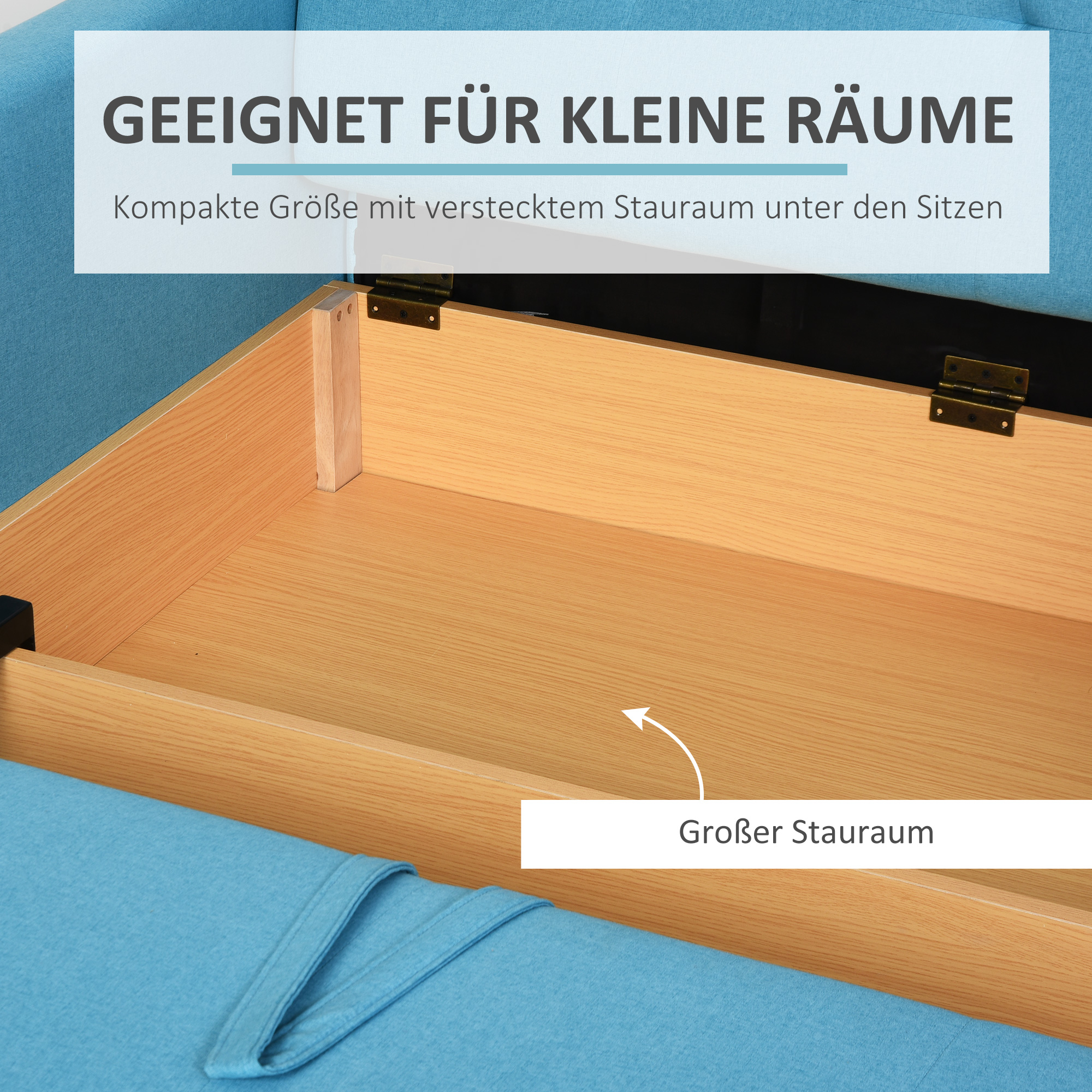 2-Sitzer Sofa Gästebett mit verstecktem Stauraum Hellblau