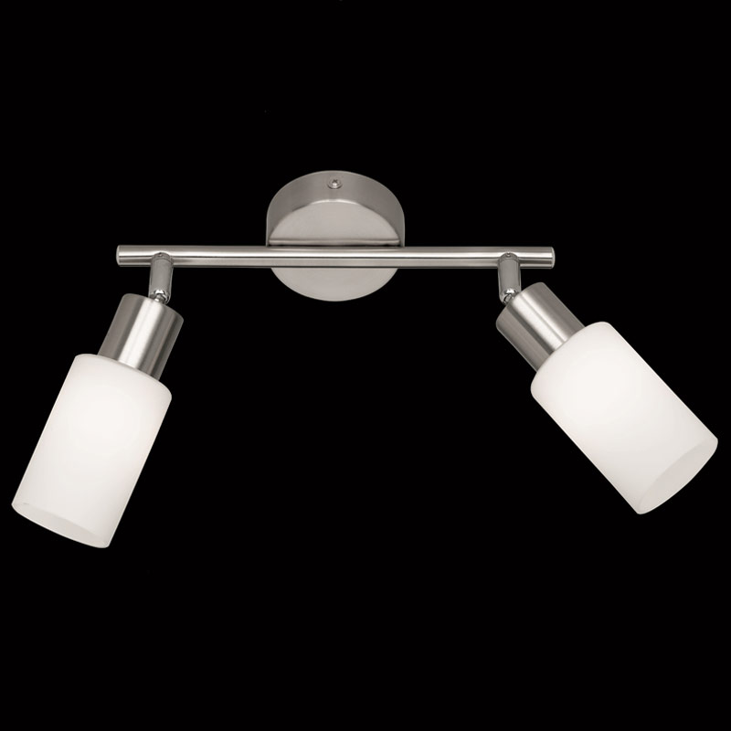 2er Deckenspot Deckenlampe nickel matt, Glas opal matt