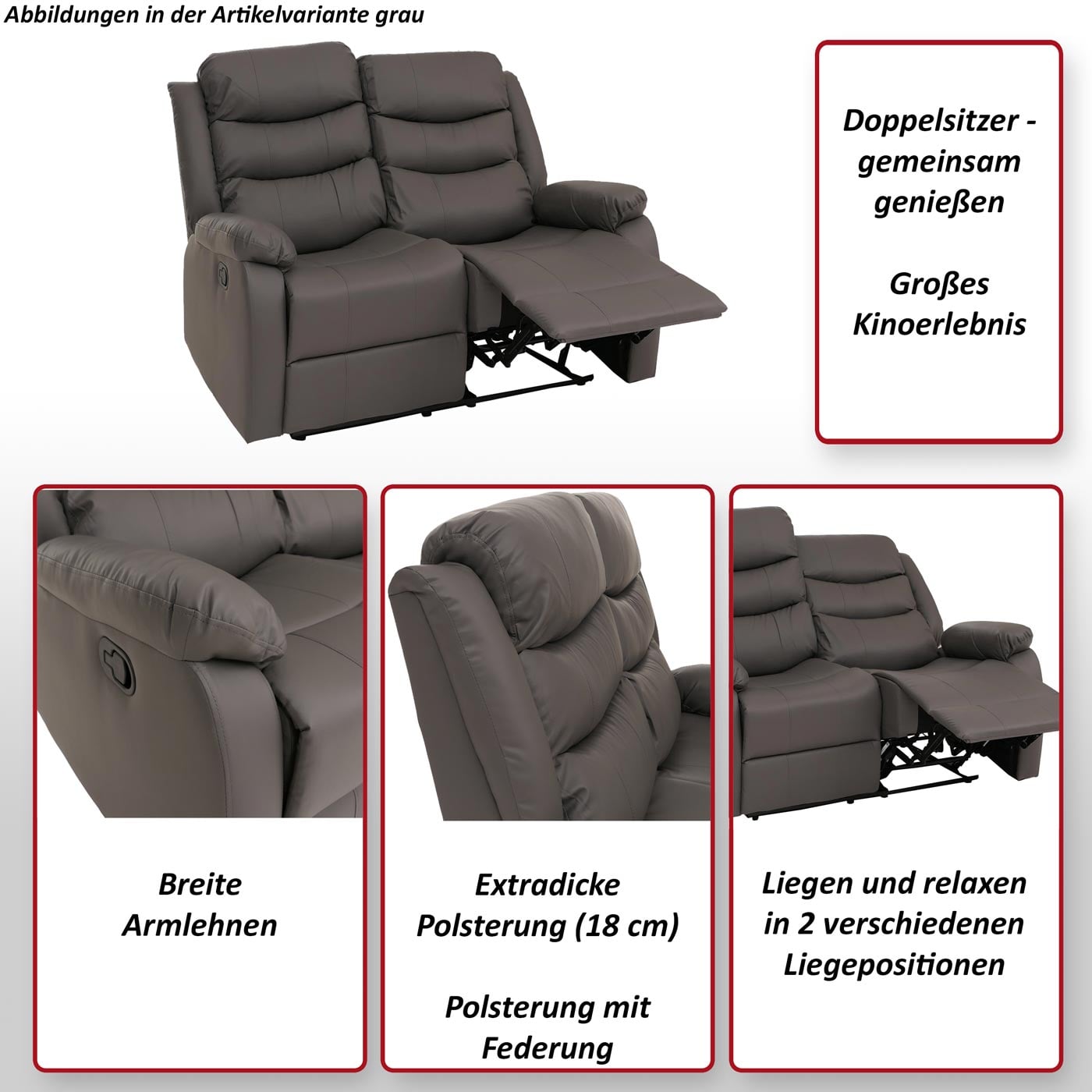 - 1x 2-Sitzer Kinosessel mit Liegefunktion