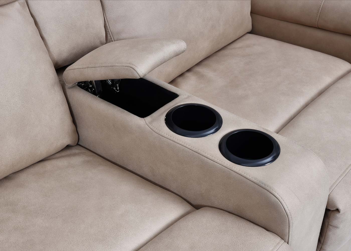 - Integriertes Staufach in der mittleren Armlehne für Fernbedienung und Zubehör