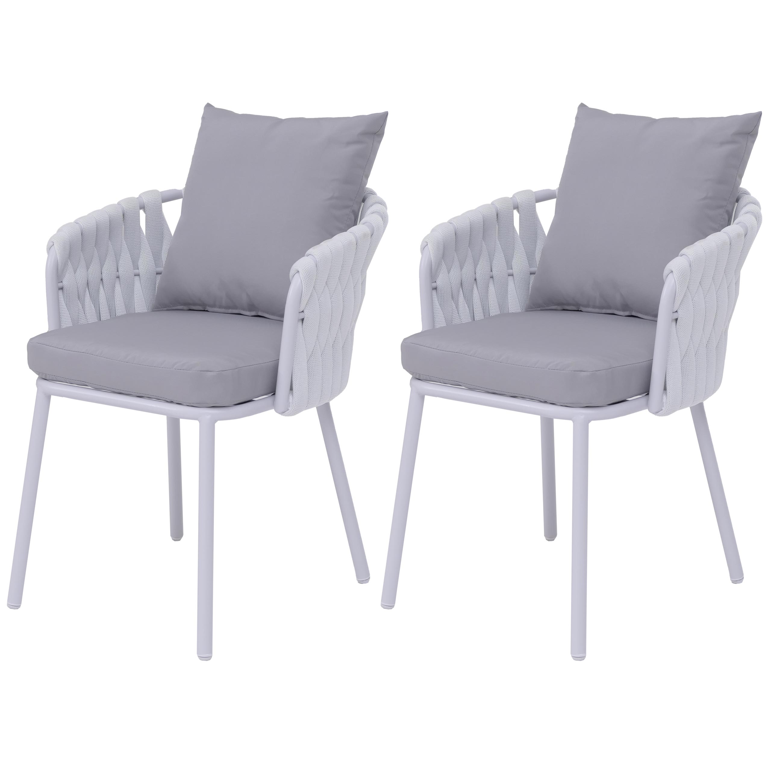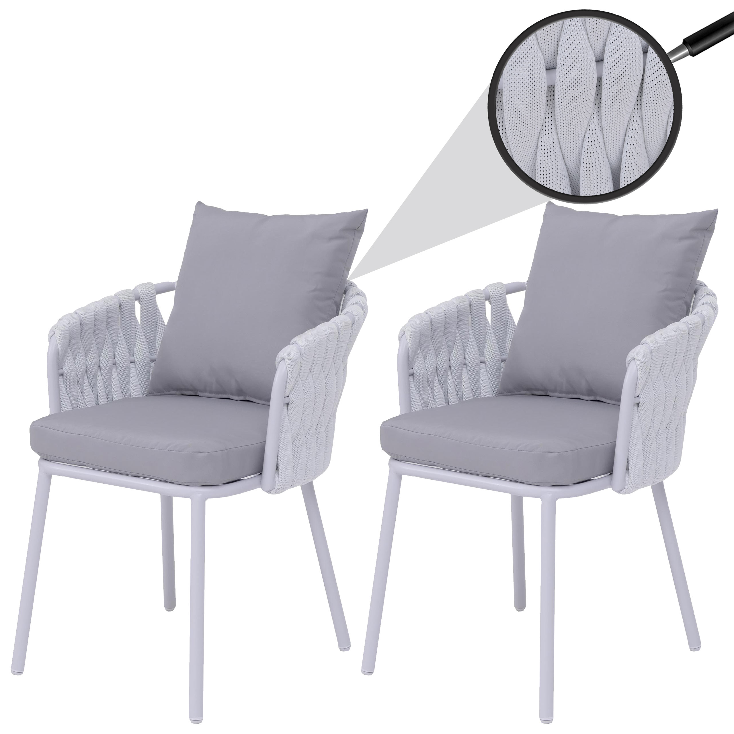 2er-Set Aluminium-Gartenstühle mit Seilgeflecht hellgrau
