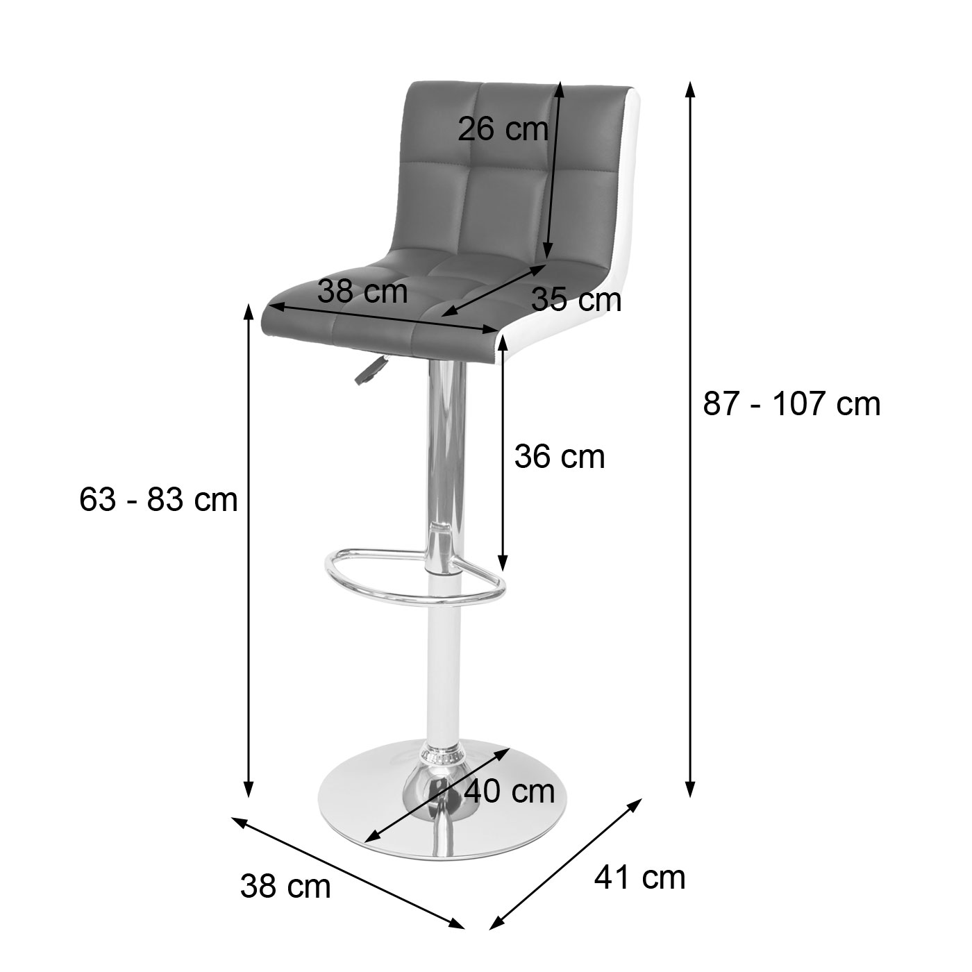 Schreiben Sie die erste Rezension für „2er-Set Barhocker JAM-G87 höhenverstellbar Kunstleder schwarz-weiss Chromfuss“