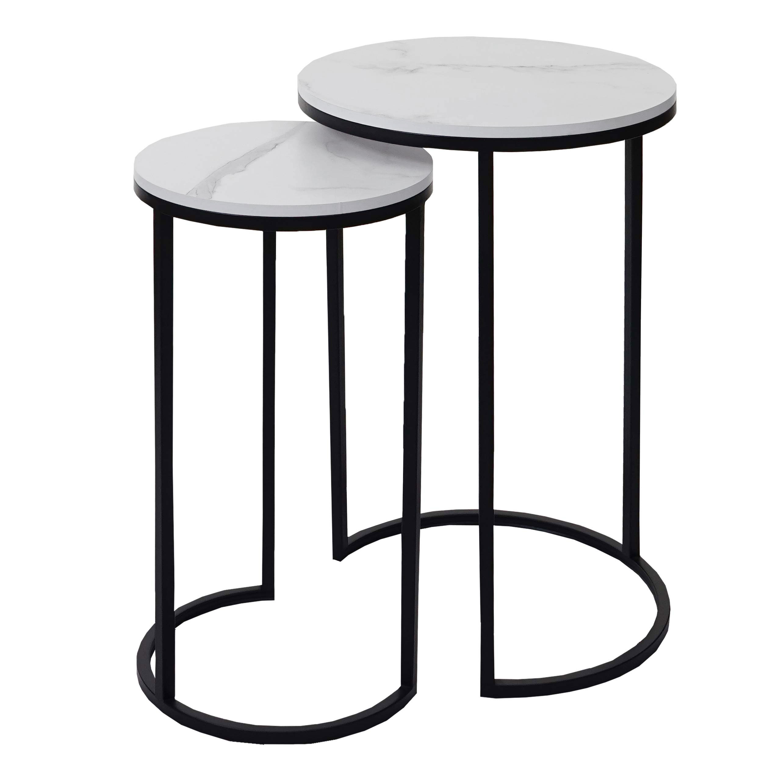 2er-Set Beistelltisch JAM-K46 Marmor-Optik FSC weiss-schwarz