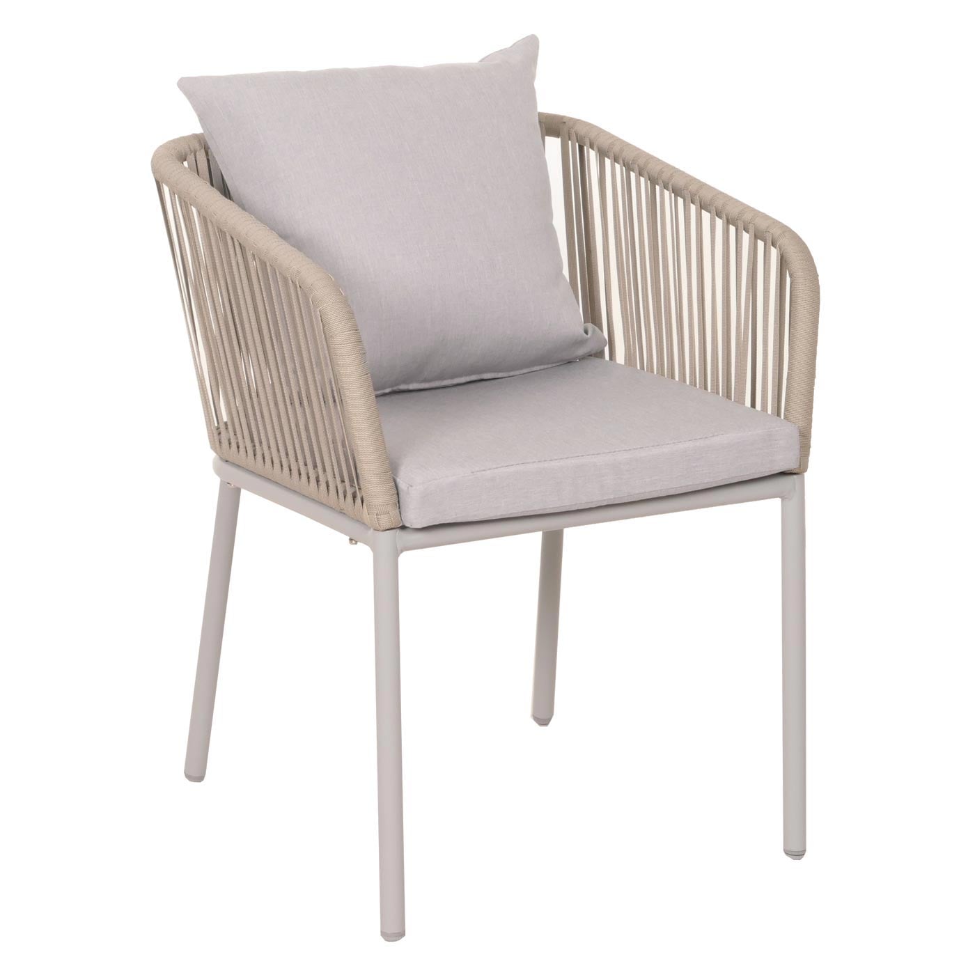 Erleben Sie entspannte Stunden im Freien mit diesem stilvollen Gartenstuhl. Das dekorative, elastische Seilgeflecht und das stabile Aluminiumgestell vereinen Design und Funktionalität. Ideal für Garten, Balkon oder Terrasse – dieser Outdoor-Stuhl bietet höchsten Sitzkomfort und überzeugt durch wetterfeste Materialien.