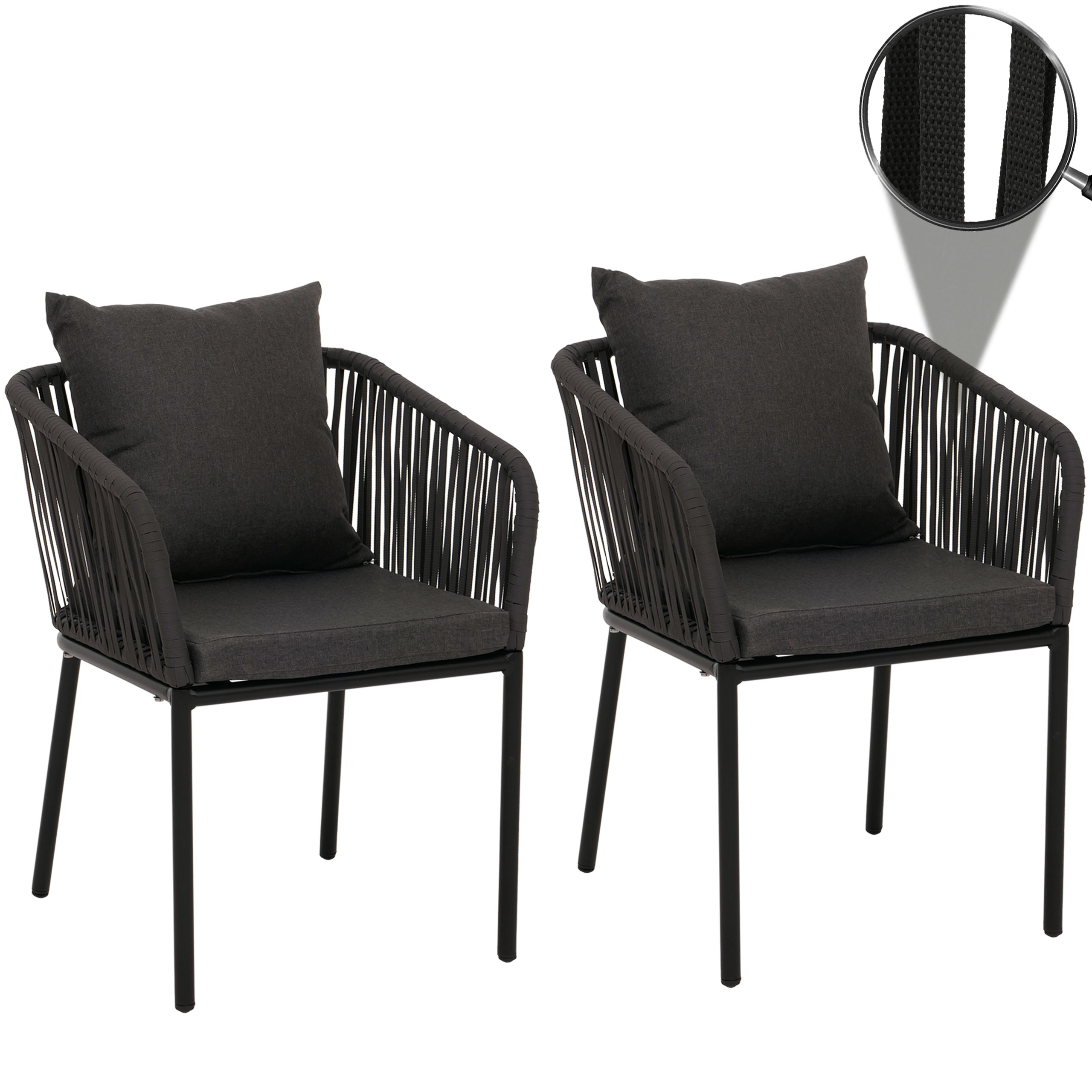 2er-Set Gartenstuhl wetterfest Aluminium Seilgeflecht anthrazit