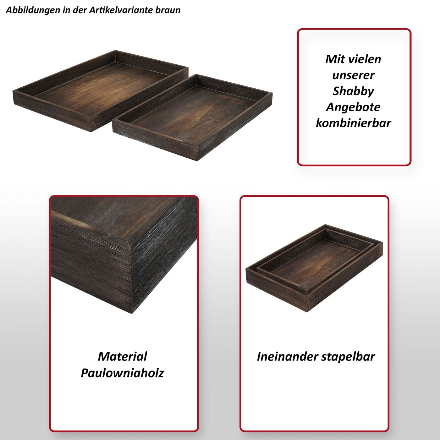 Bringen Sie mit diesen stilvollen Holzschalen im Shabby-Look rustikalen Charme und praktische Vielseitigkeit in Ihr Zuhause!