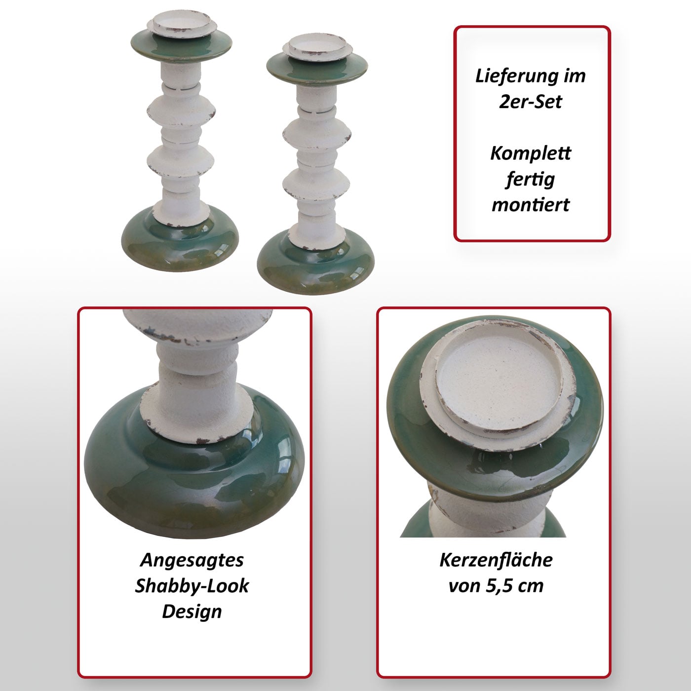 - 2x Kerzenständer im Shabby-Look