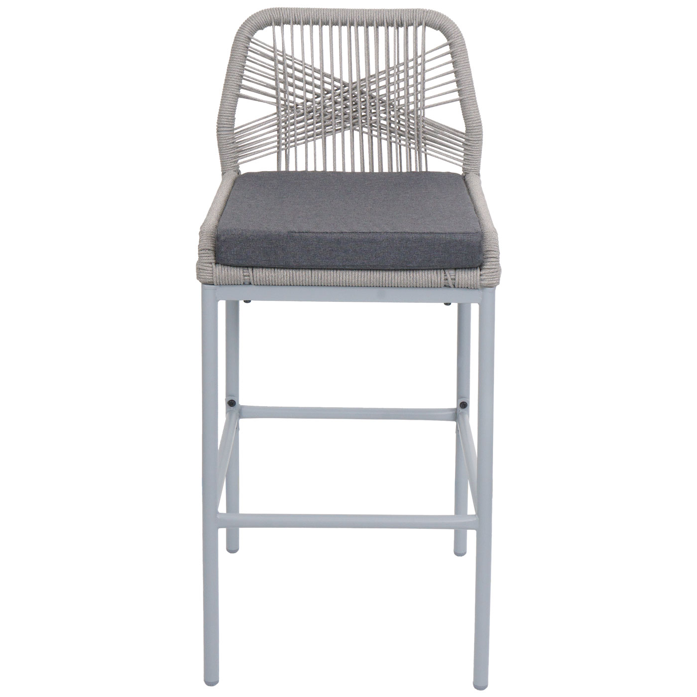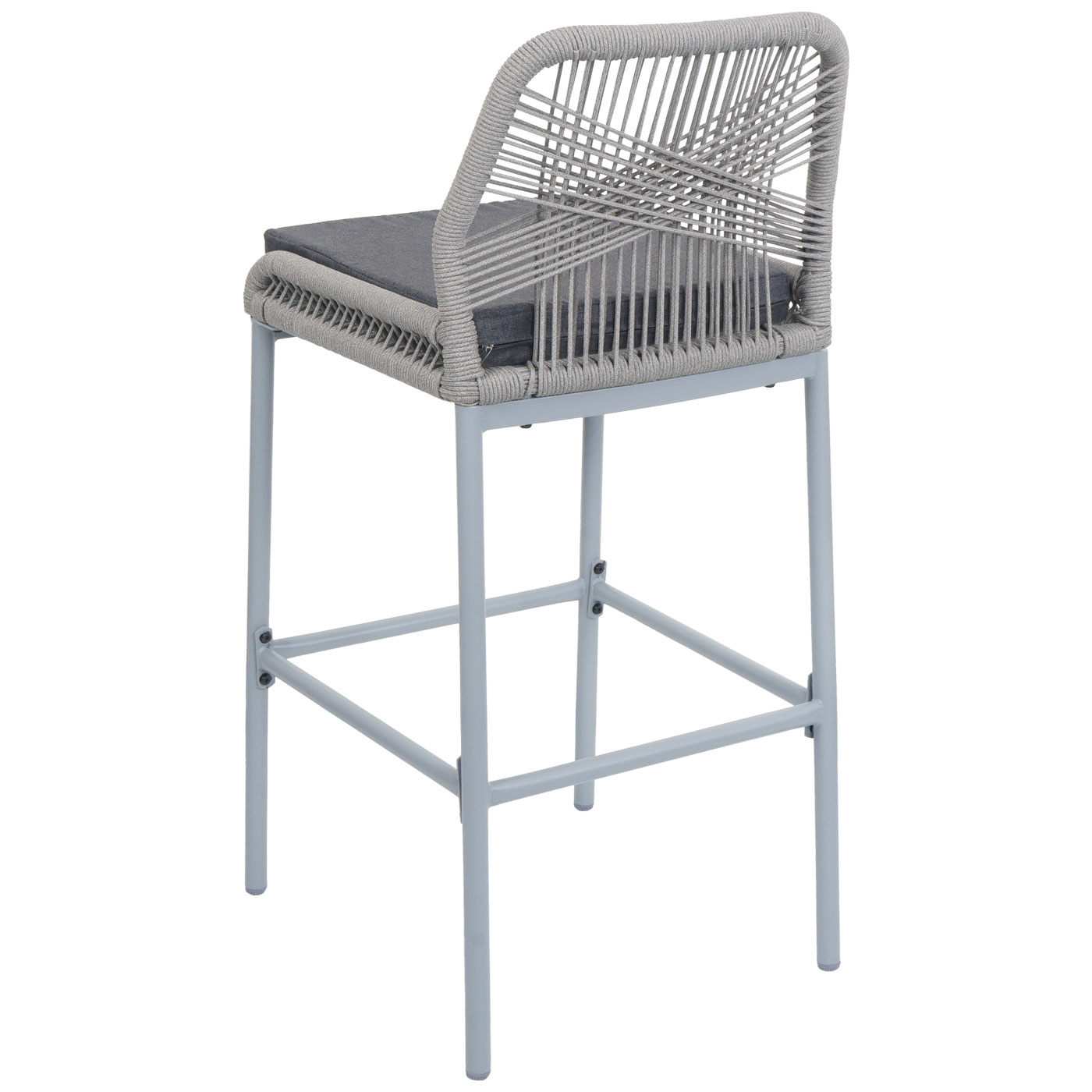 Dieses hochwertige Barhocker-Set verbindet modernes Design mit hohem Sitzkomfort und ist ideal für Küche, Bar, Balkon oder Terrasse. Das elastische Seilgeflecht und die weiche Polsterung sorgen für ein entspanntes Sitzerlebnis, während das stabile Stahlgestell und verstellbare Fußbodenschoner für Standfestigkeit auf jedem Untergrund sorgen.