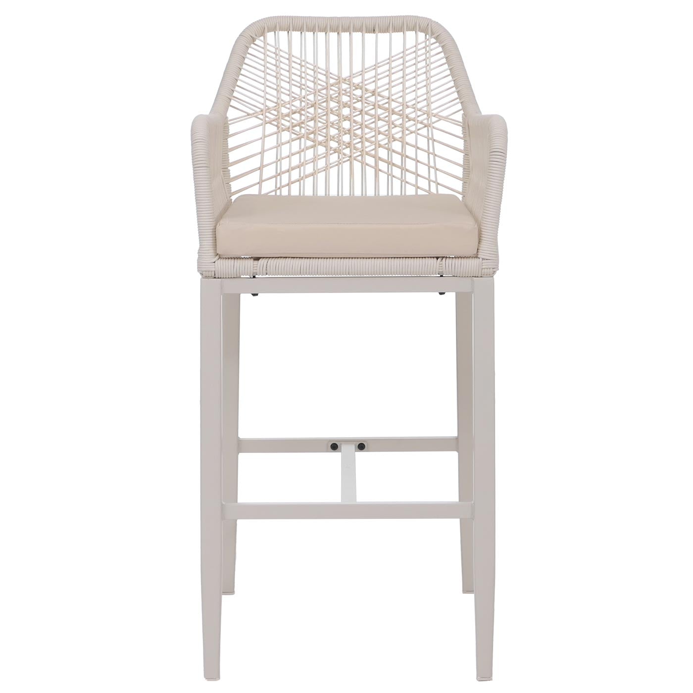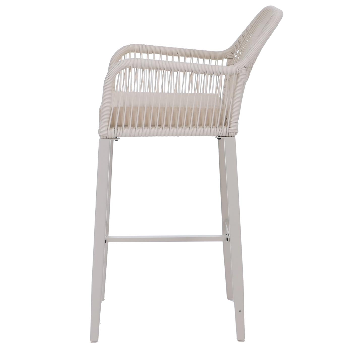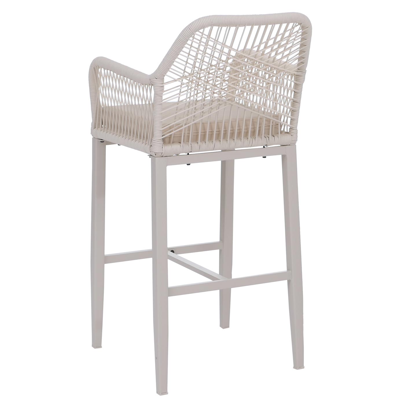 Dieses moderne Barhocker-Set bietet eine perfekte Kombination aus Design, Funktionalität und Komfort. Dank wetterbeständigem Seilgeflecht, stabilem Stahlgestell und bequemer Polsterung sind die Hocker ideal für den Einsatz im Garten, auf der Terrasse, dem Balkon oder in der Hausbar geeignet.