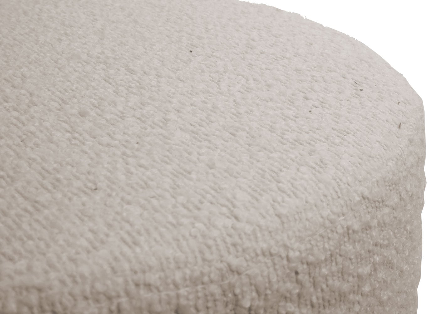 Dieser elegante Hocker verbindet stilvolles Design mit praktischer Funktionalität und ist die ideale Sitzgelegenheit für verschiedene Räume wie Wohn- oder Schminkzimmer. Der hochwertige Bouclé-Stoffbezug sorgt für einen modernen Look und außergewöhnlichen Sitzkomfort.