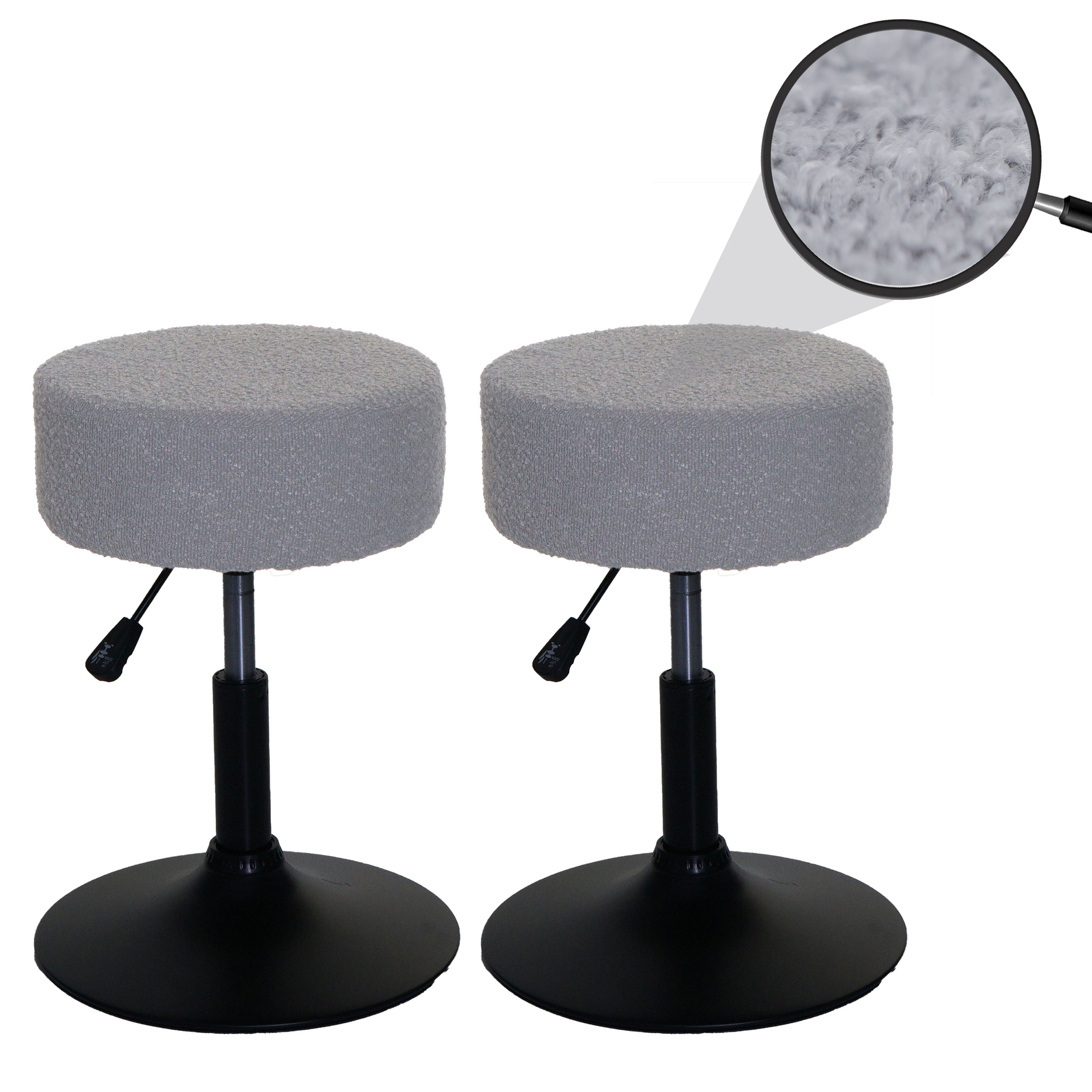 2er-Set Sitzhocker Schminkhocker höhenverstellbar drehbar Bouclé grau