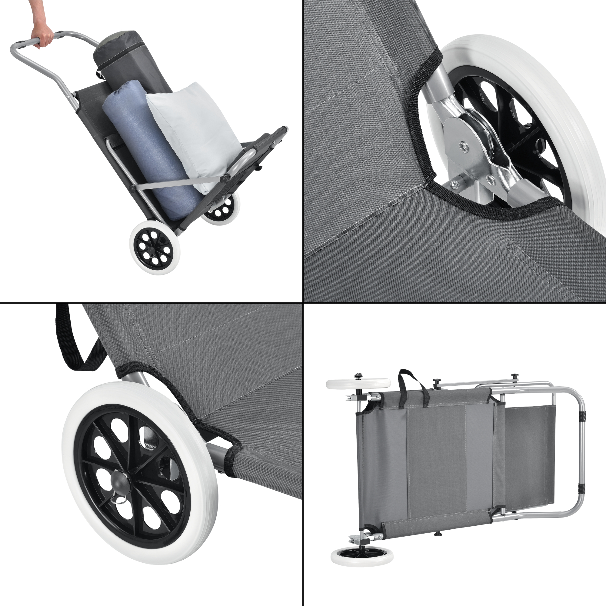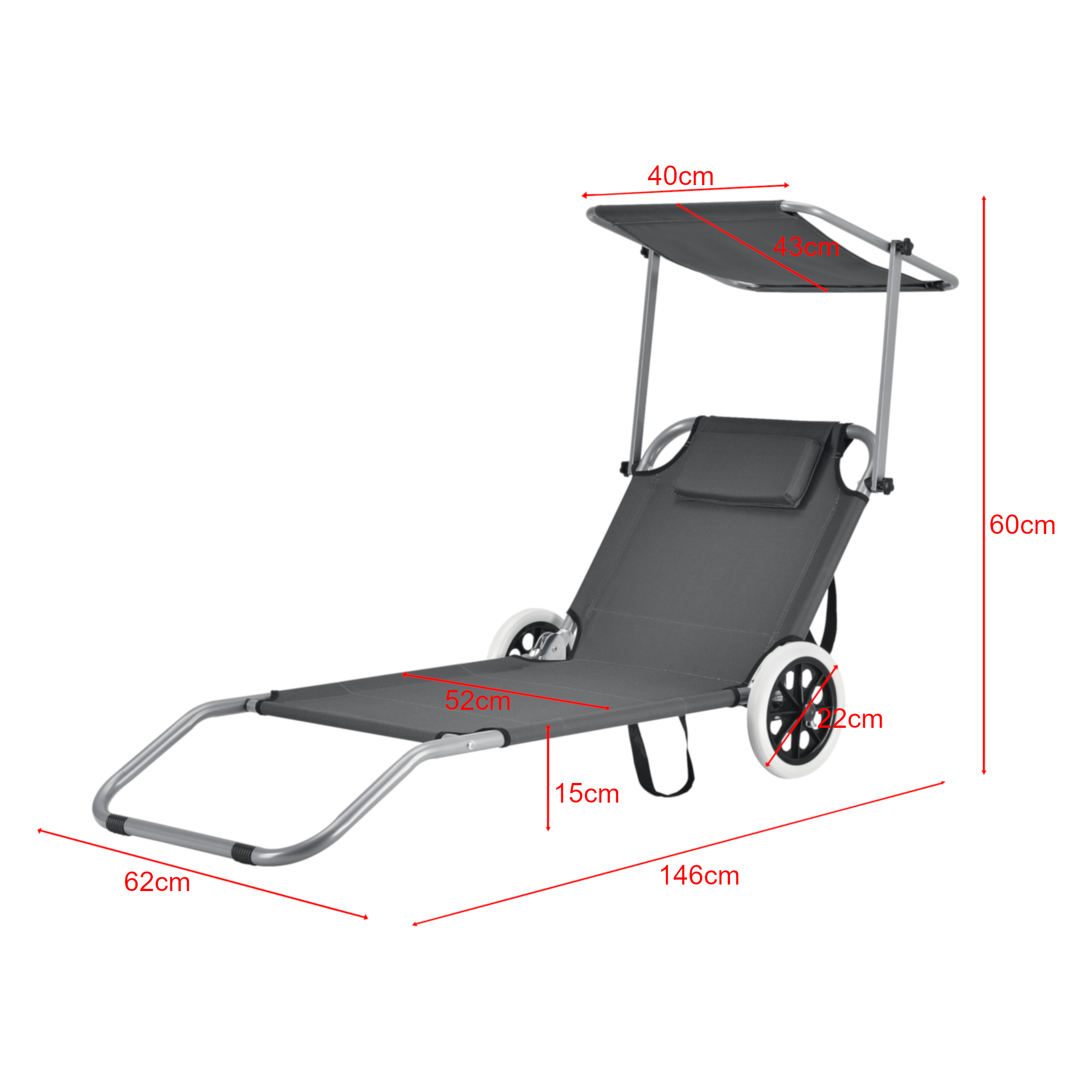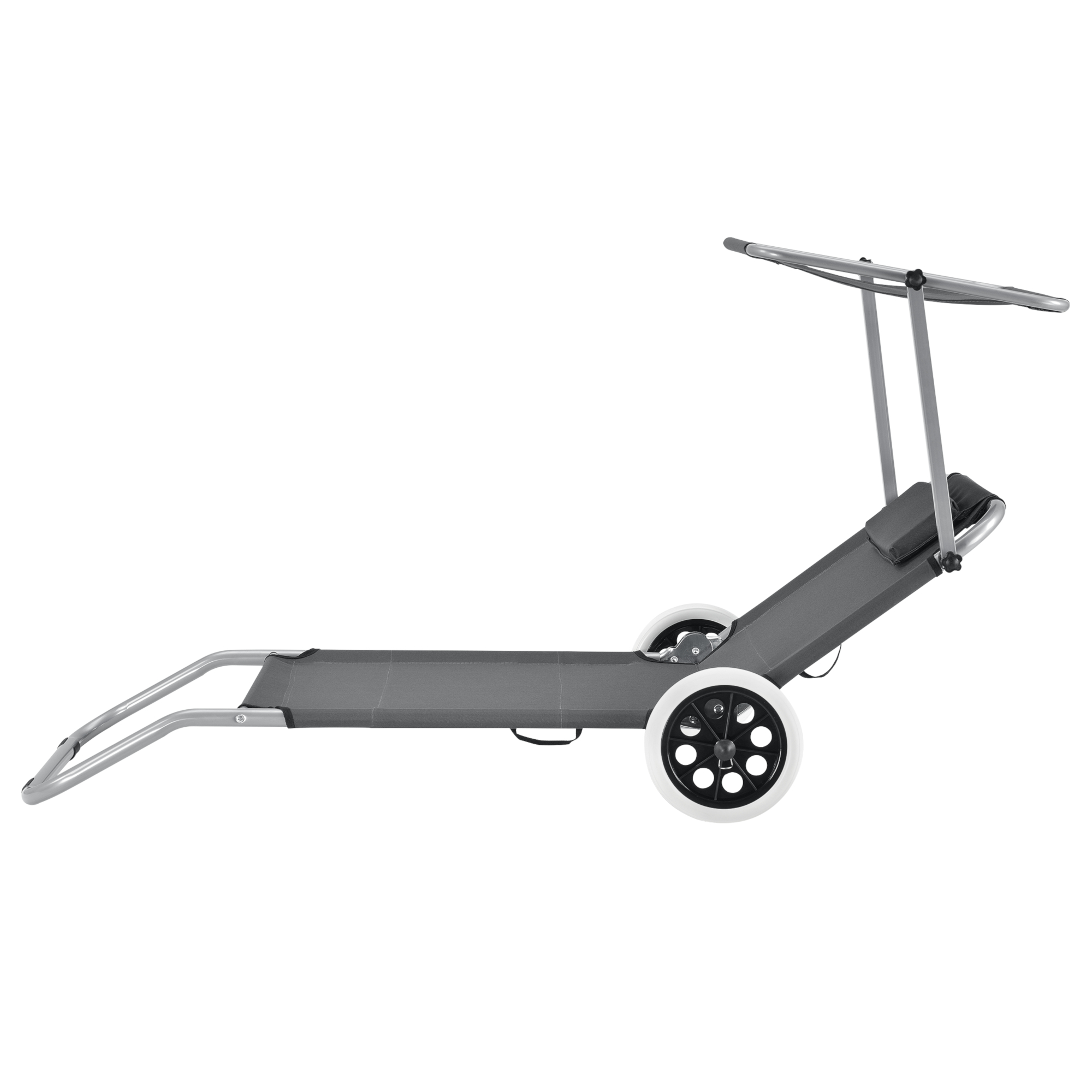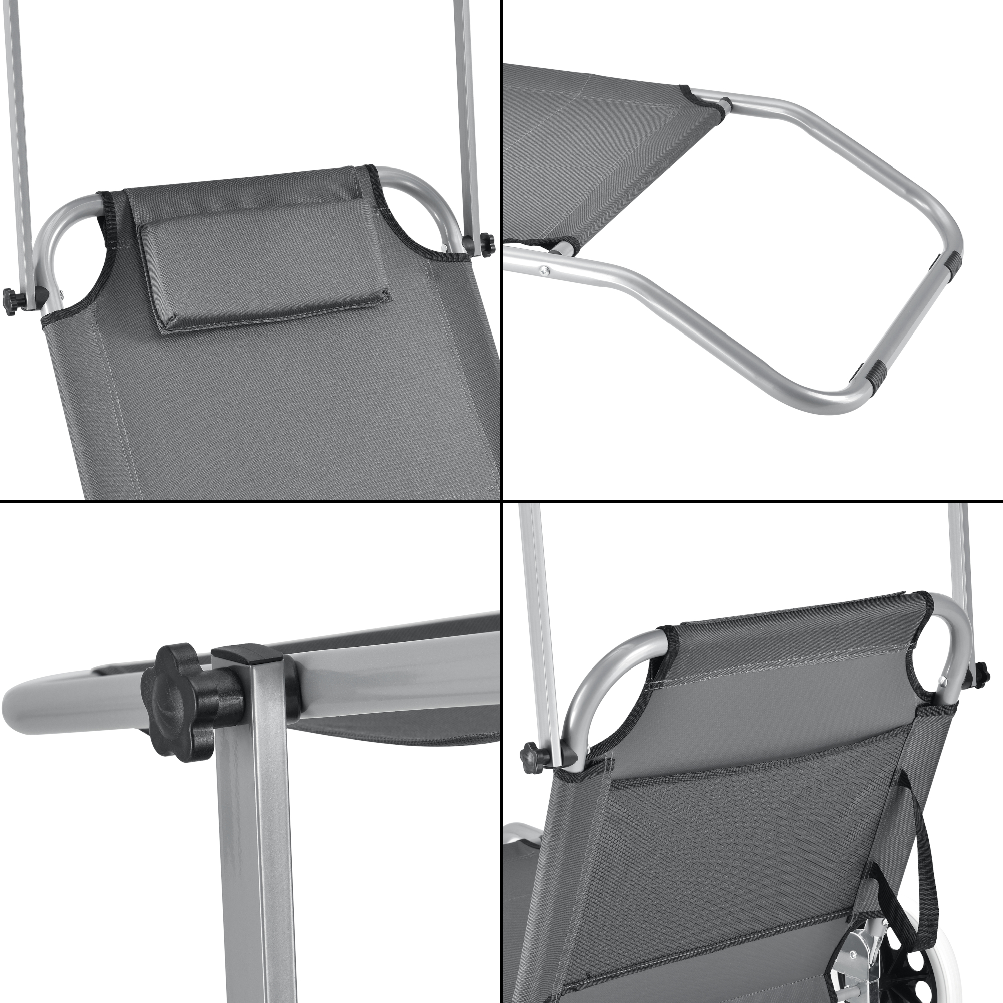 Die hochwertige Garten- und Strandliege mit Sonnendach, eignet sich perfekt für ein Sonnenbad.