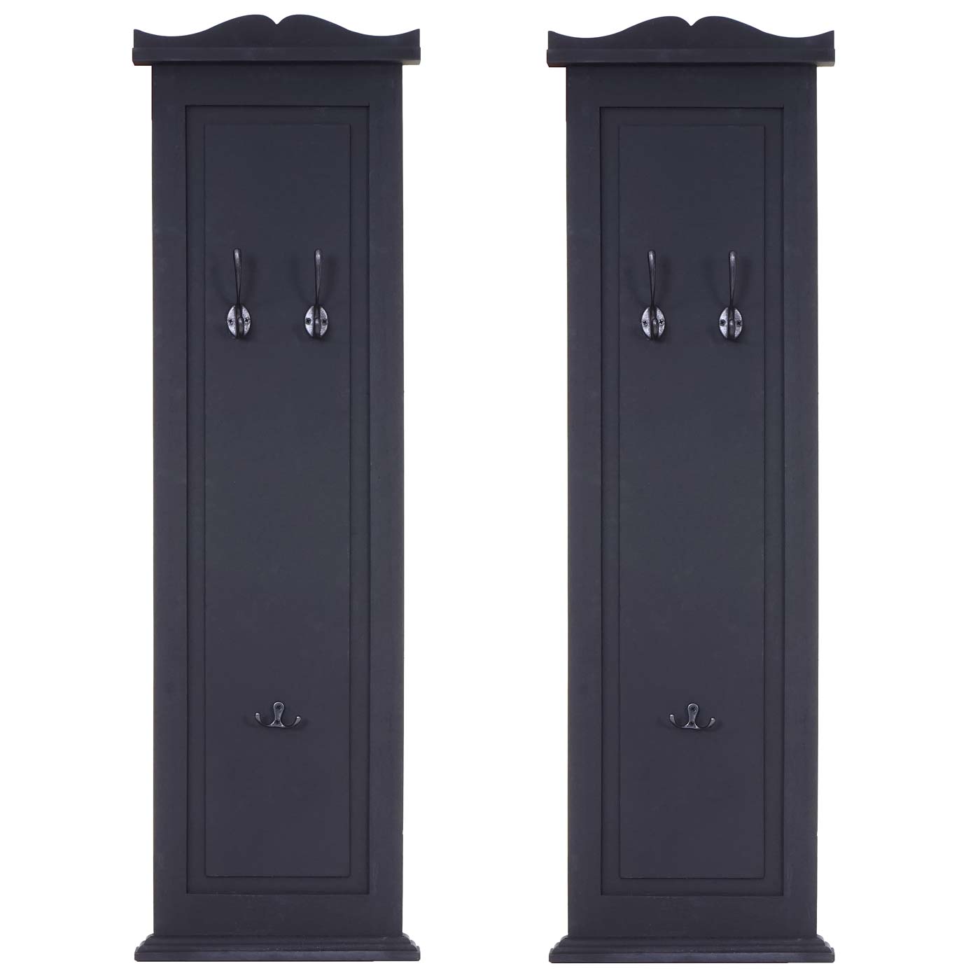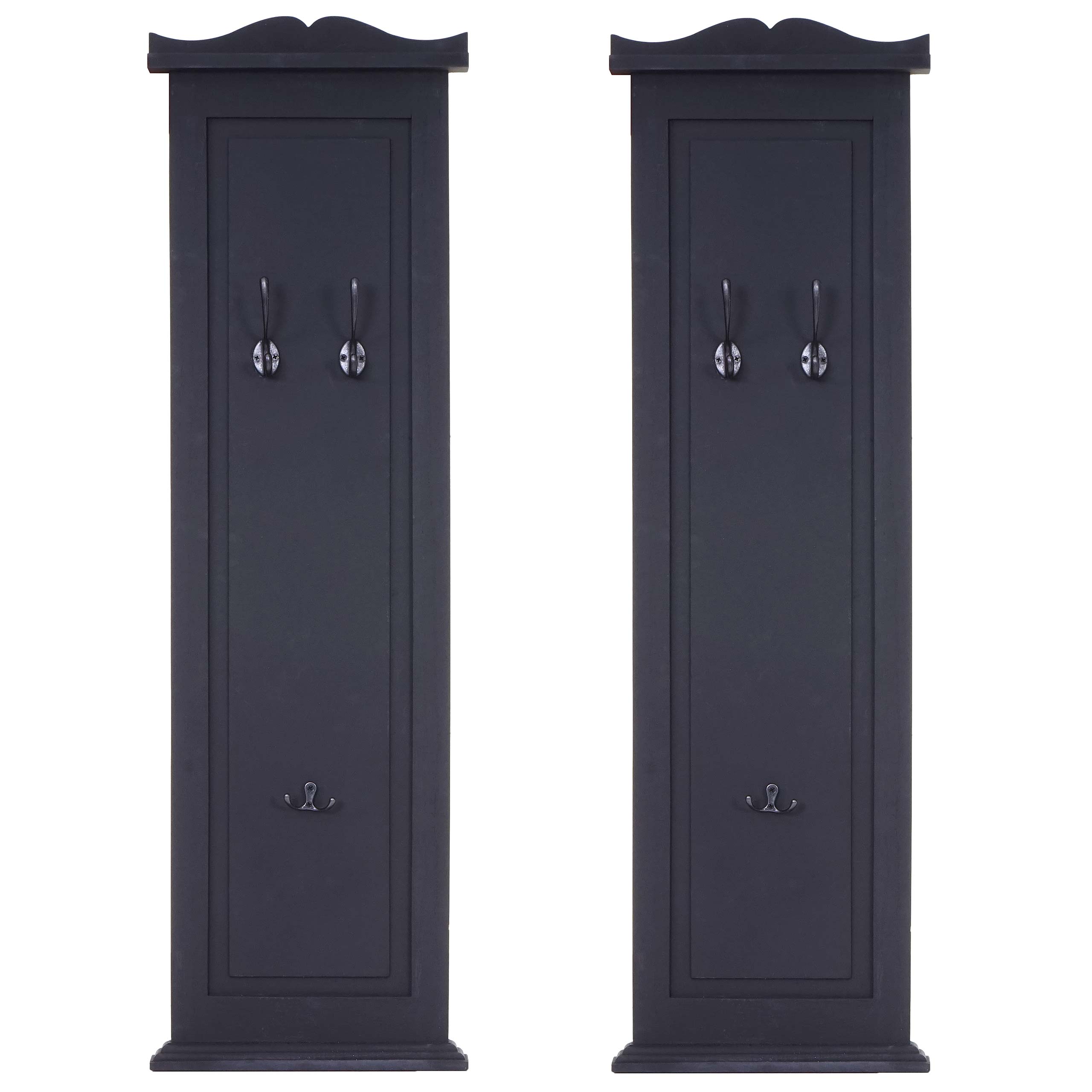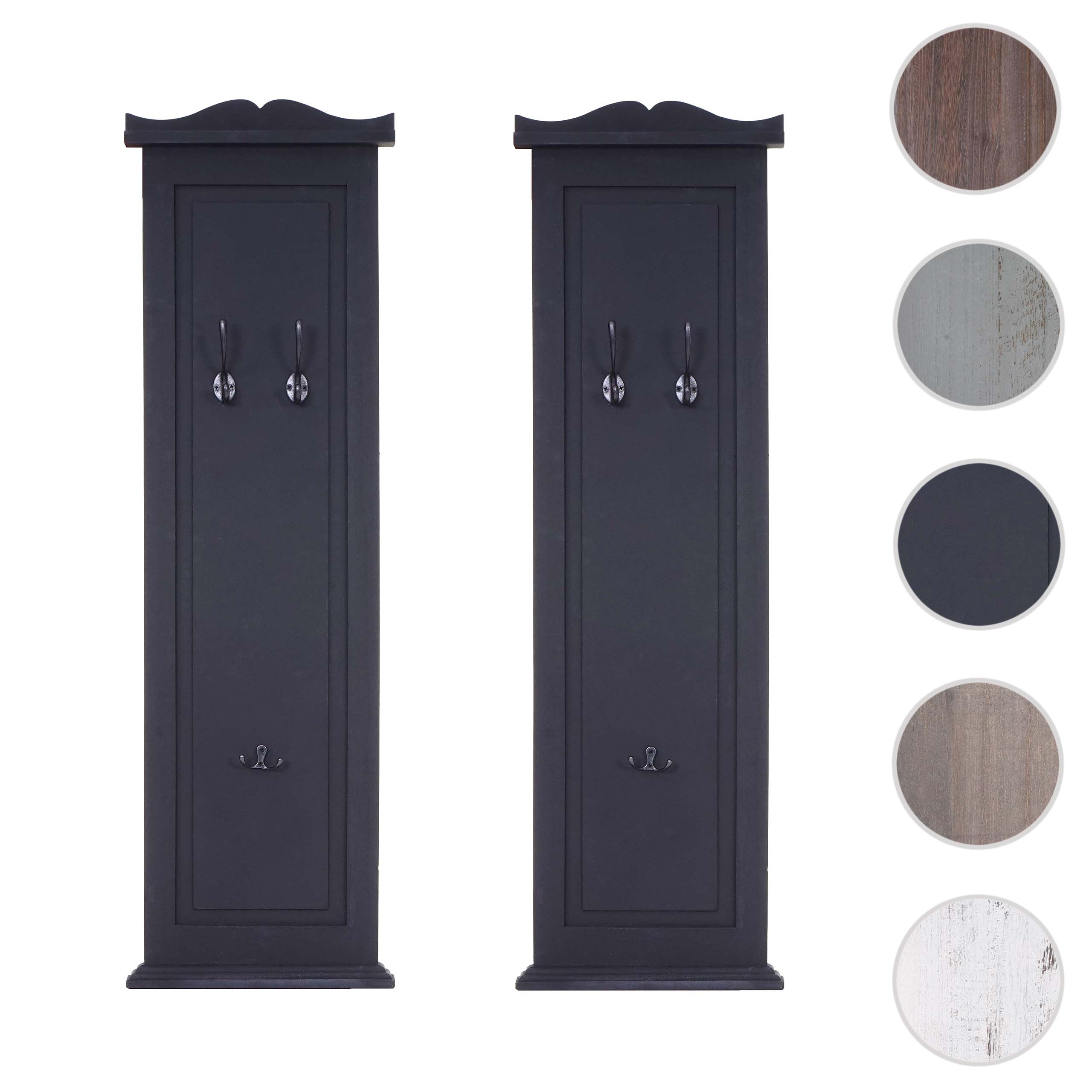 2er-Set Wandgarderobe mit Holzhaken lackiert dunkelgrau