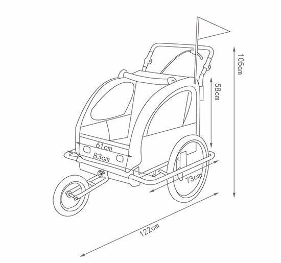 Unser Kinderfahrradanhänger ist Ihr treuer Begleiter für Spaziergänge, Einkaufsfahrten, Radtouren oder den Weg zum Kindergarten. Highlight des Anhängers ist seine 2 in 1 Funktion. Ohne komplizierte Umbauten und Werkzeug wird aus dem Fahrradanhänger ein schiebbarer Jogger. Das Vorderrad ist leichtgängig, angehalten wird mit der gut greifbaren Handbremse. Für beste Sichtbarkeit sind an Vorder- und Rückseite sowie an den Felgen Reflektoren angebracht.