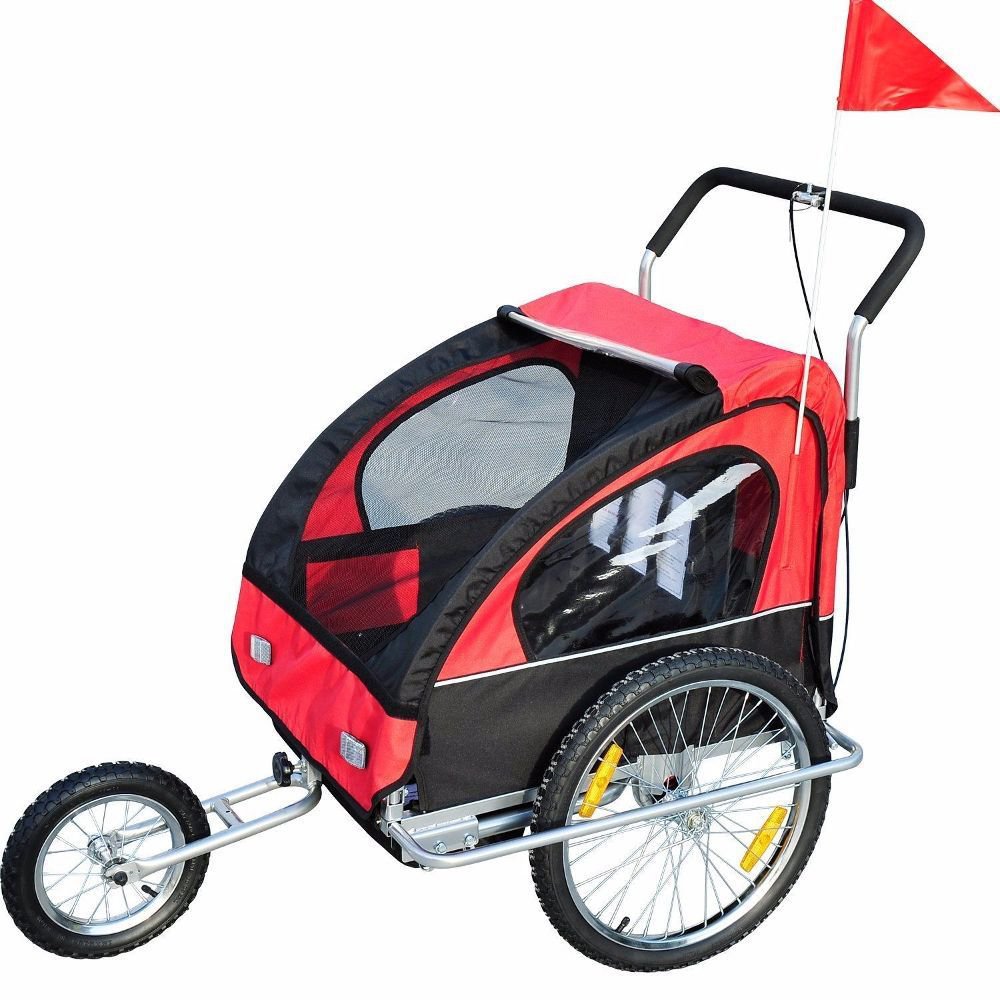 2in1 Fahrradanhänger Kinderanhänger Jogger Kinderfahrradanhänger Rot-schwarz