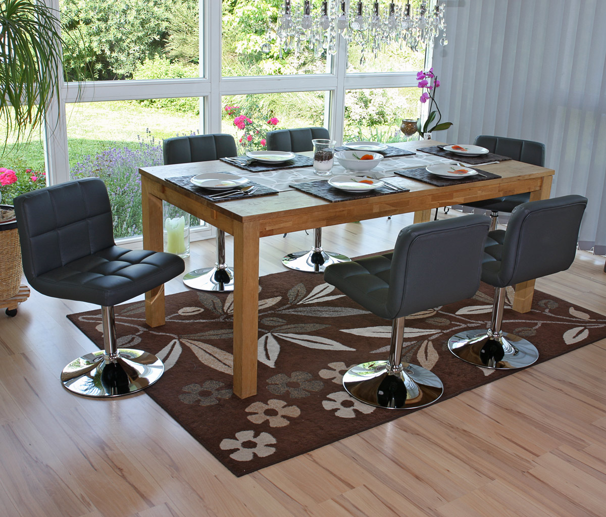 Dieser Esszimmerstuhl bietet nicht nur ein hohes Maß an Komfort durch seine dicke Polsterung, sondern ist auch für längere Sitzungen oder Mahlzeiten bestens geeignet. Die 360°-Drehfunktion gewährleistet Flexibilität und einfache Beweglichkeit, ideal sowohl für das Homeoffice als auch für den Essbereich. Der gummierte Boden schützt deine Böden vor Kratzern und hält den Stuhl sicher an seinem Platz.