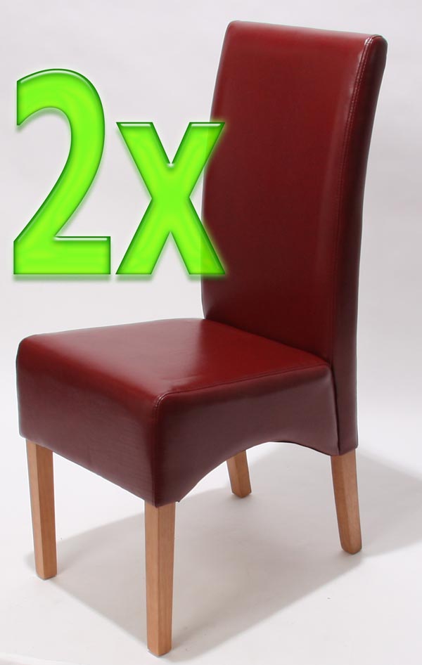 2x Esszimmerstuhl Lehnstuhl Stuhl Latina, LEDER ~ rot, helle Beine