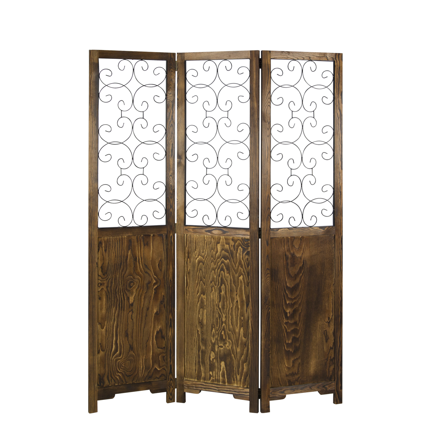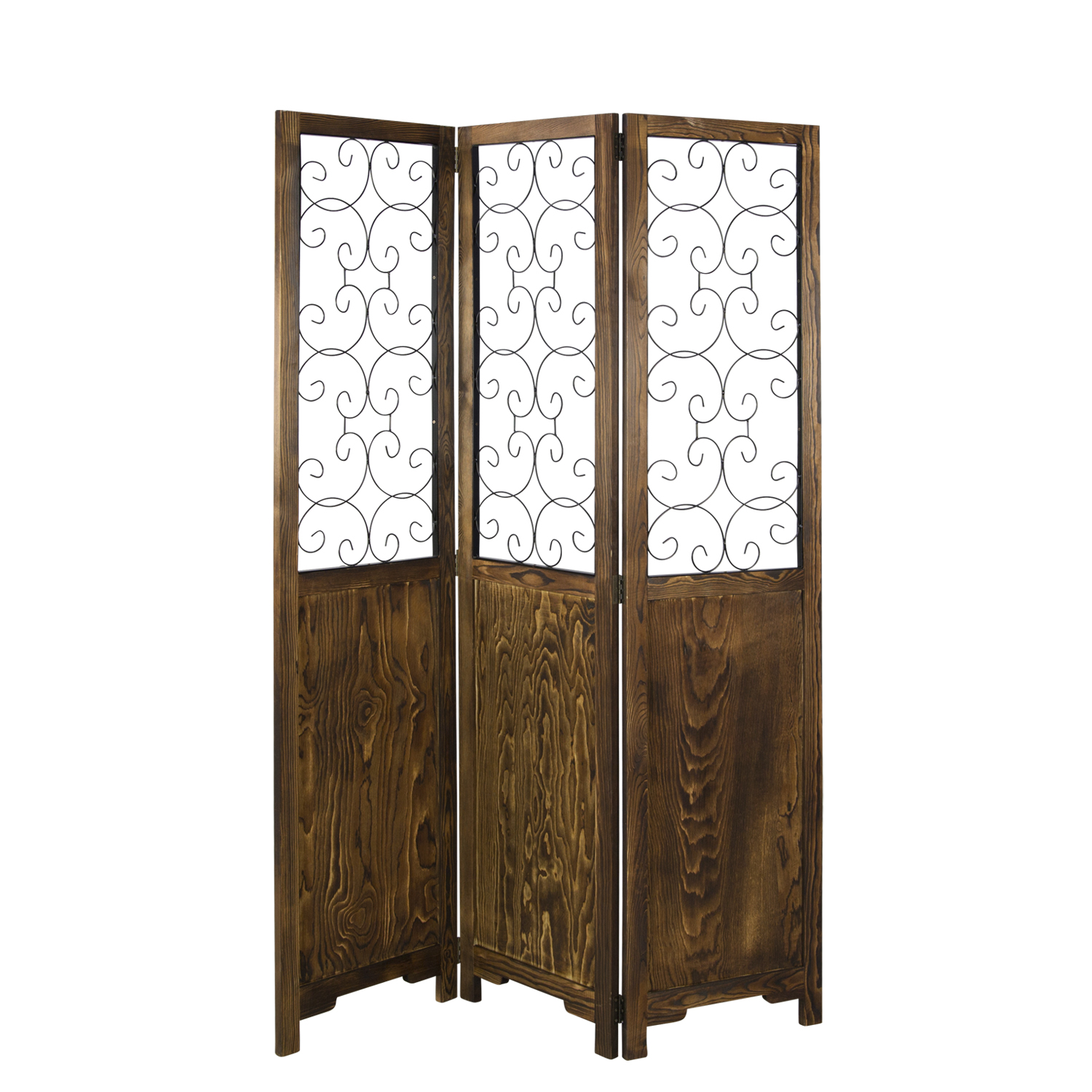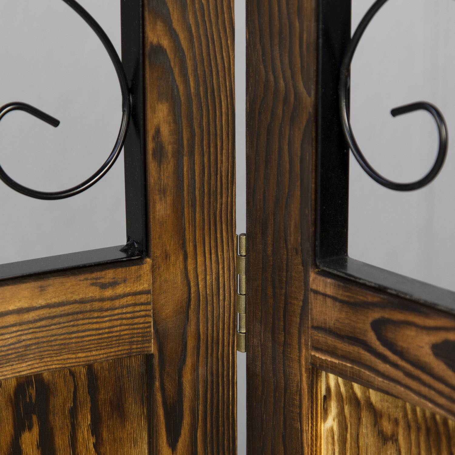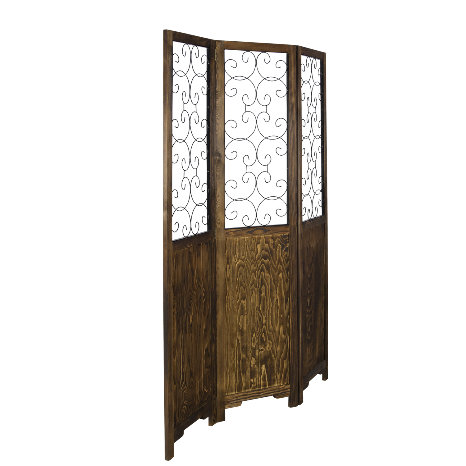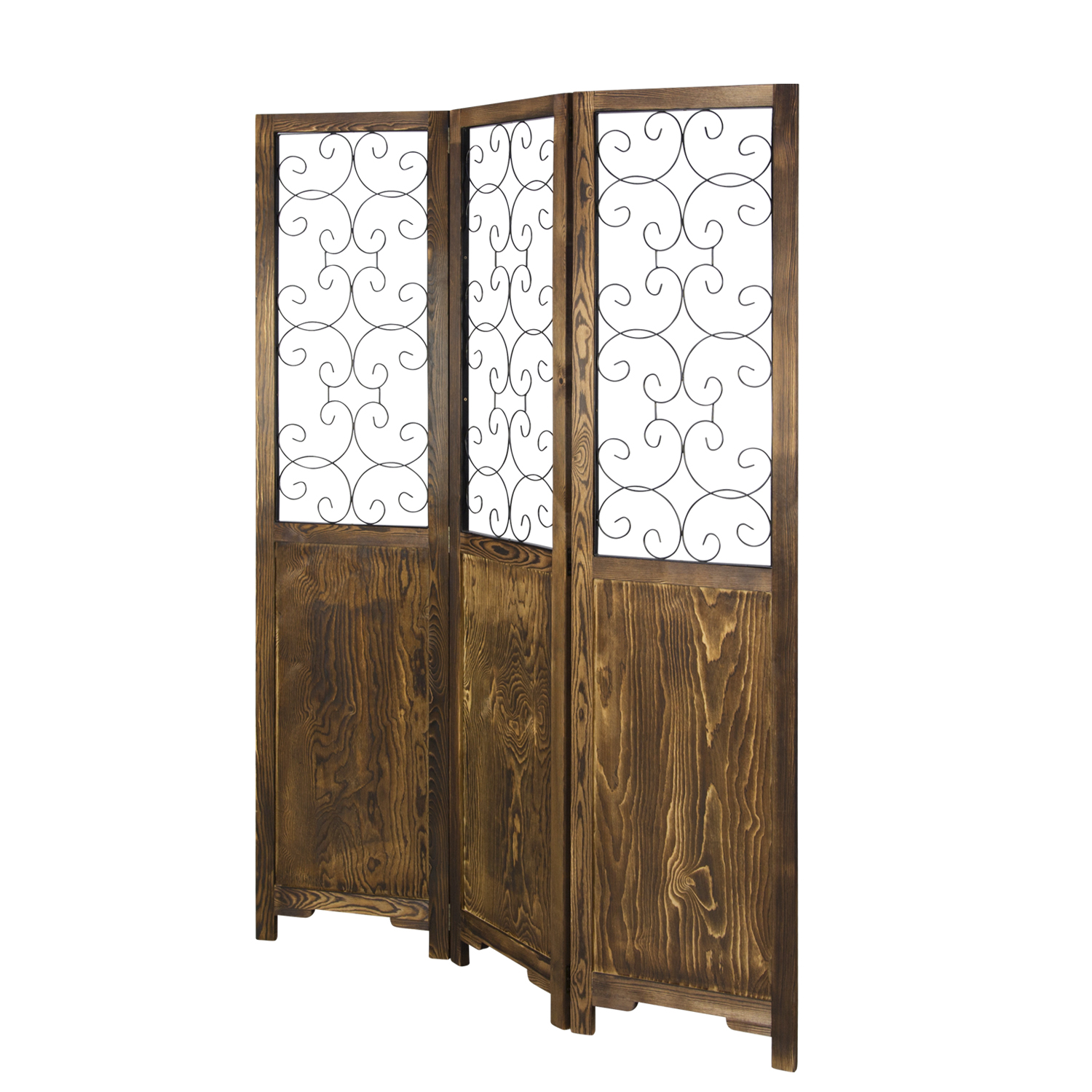 Im oberen Bereich schwarz lackiertes Metall mit dekorativen Verzierungen. Diese bewegliche Wand lässt sich einfach auf- und zusammenklappen, und lässt sich problemlos und platzsparend bei Nichtgebrauch wegräumen.