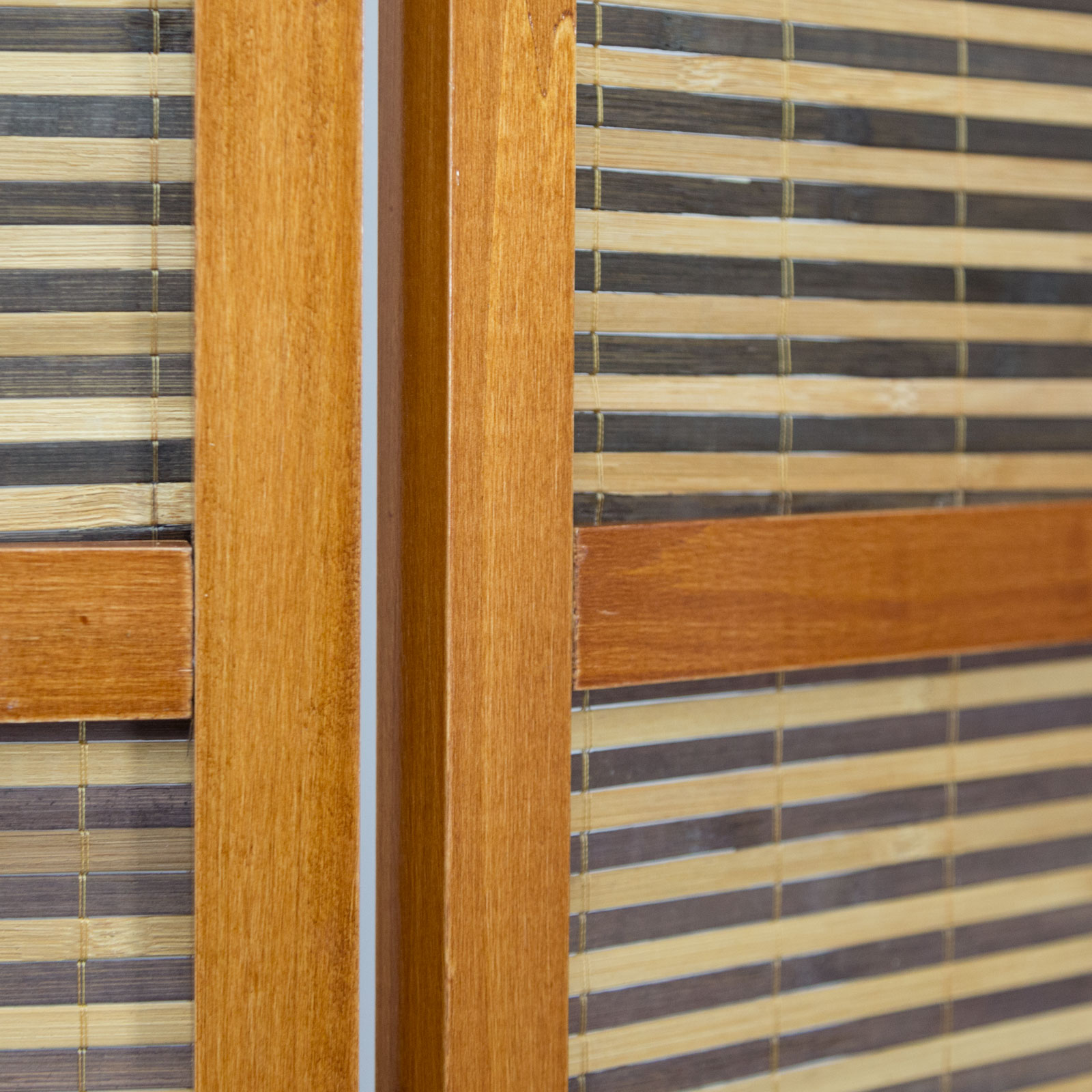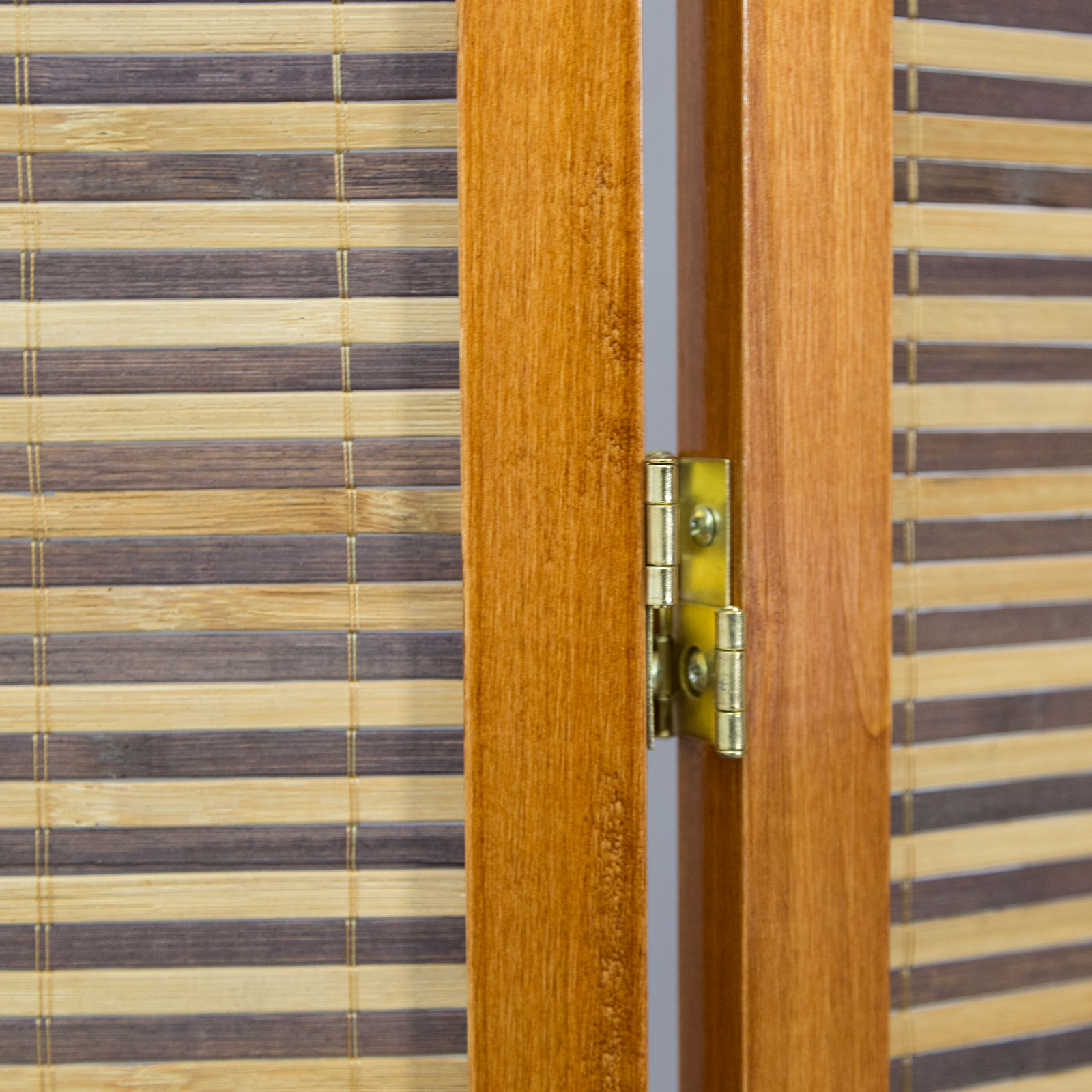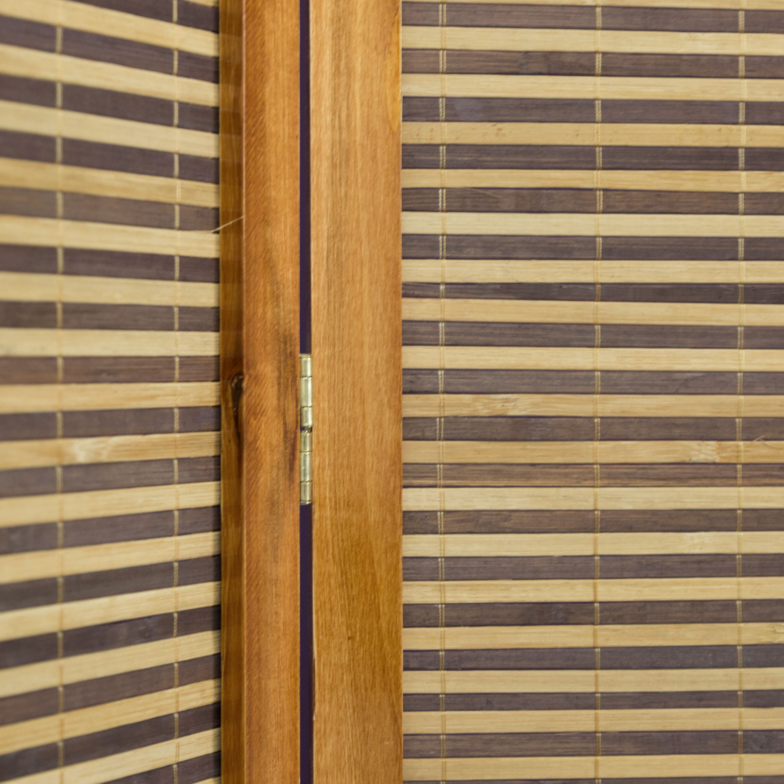 Dieser Paravant besticht durch seine erstklassigen Materialien. Hochwertiges mit Bambus ausgekleidetes Holz erzeugt ein naturnahes Ambiente. Bambus ist ein beständiges und langlebiges Naturprodukt das jeden Wohnbereich natürlich aufwertet. Das harmonische Muster ist dezent und ausgesprochen schön. Das Produkt ist nicht nur ein optisches Highlight, sondern hat als Sichtschutz und Raumtrenner auch eine funktionelle Wirkung. Durch Scharniere, die in beide Richtungen klappbar sind, kann der Paravant sehr leicht und genau nach Ihren individuellen Wünschen in den Wohnbereich integriert werden. Sollte er einmal nicht gebraucht werden, lässt er sich problemlos und platzsparend zusammenklappen.