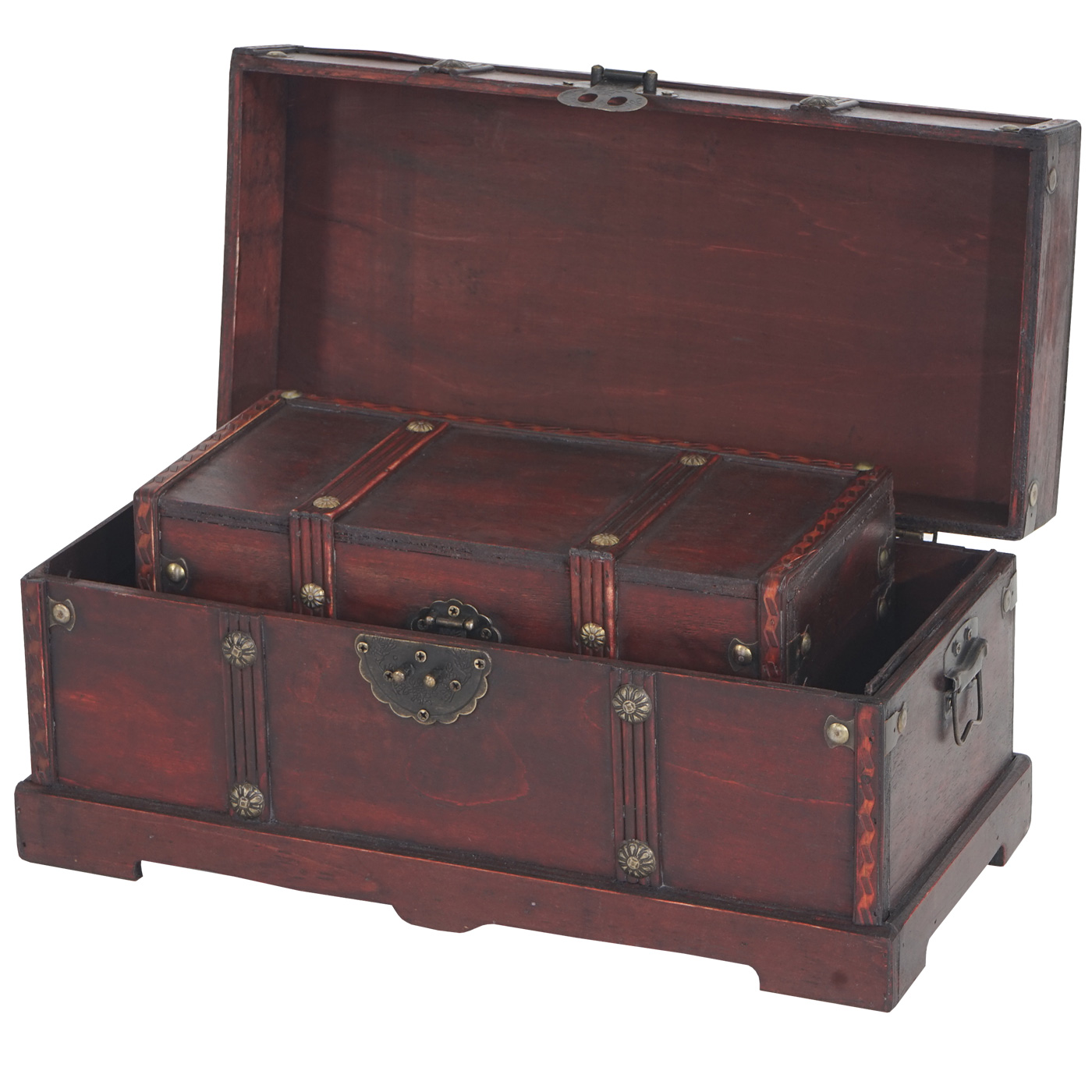 3er Set Holztruhe Holzbox Schatztruhe Valence Antikoptik 10x21x10 bis 17x38x18cm ~ eckig