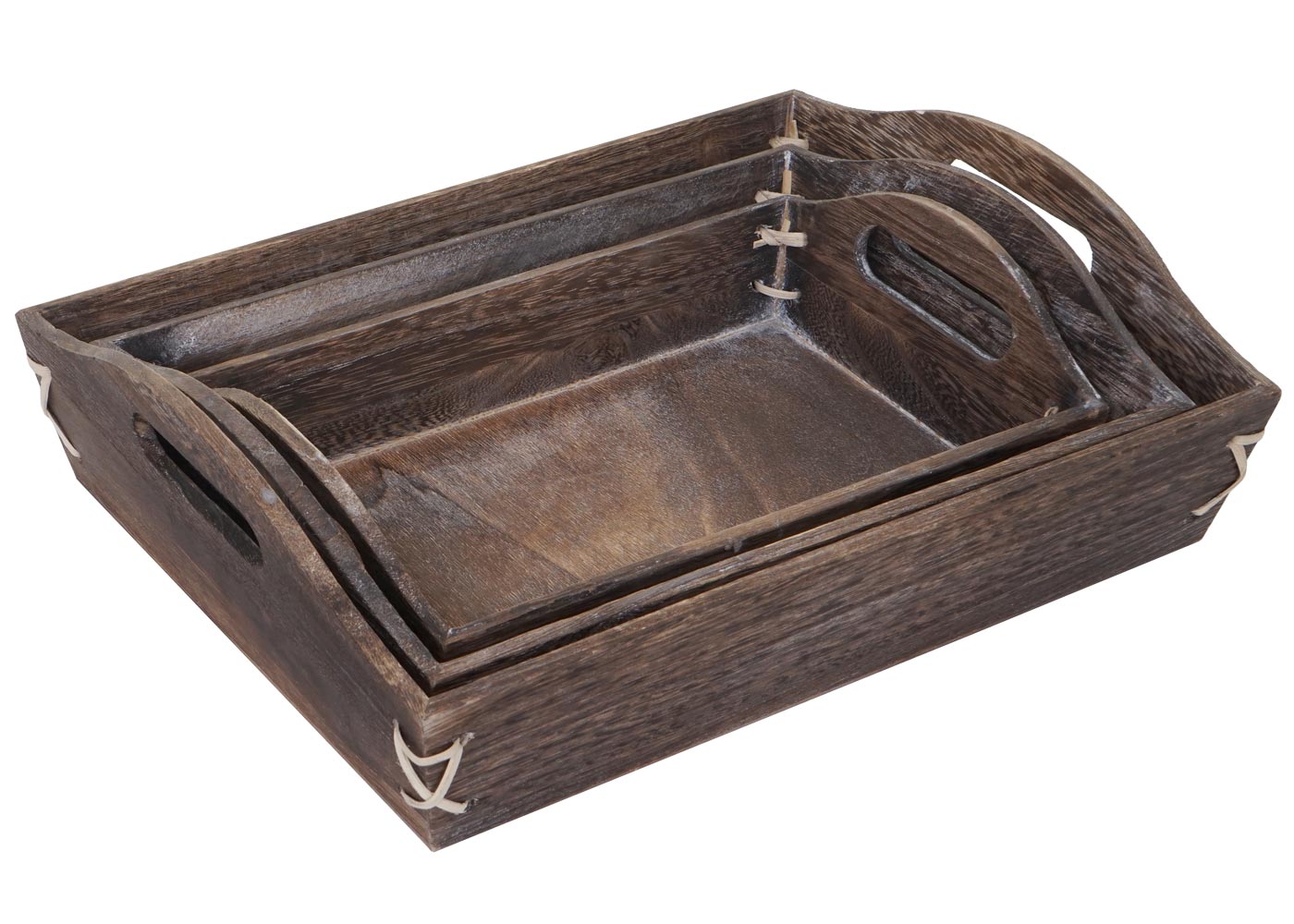 3er Set Tablett HWC-C50 Frühstückstablett Dekotablett Shabby-Look ~ braun
