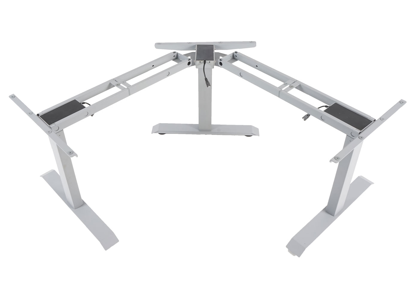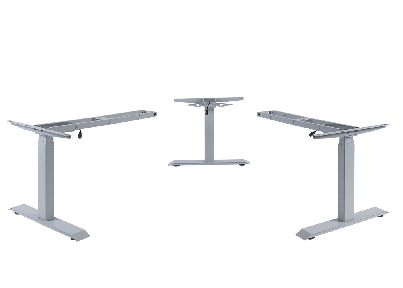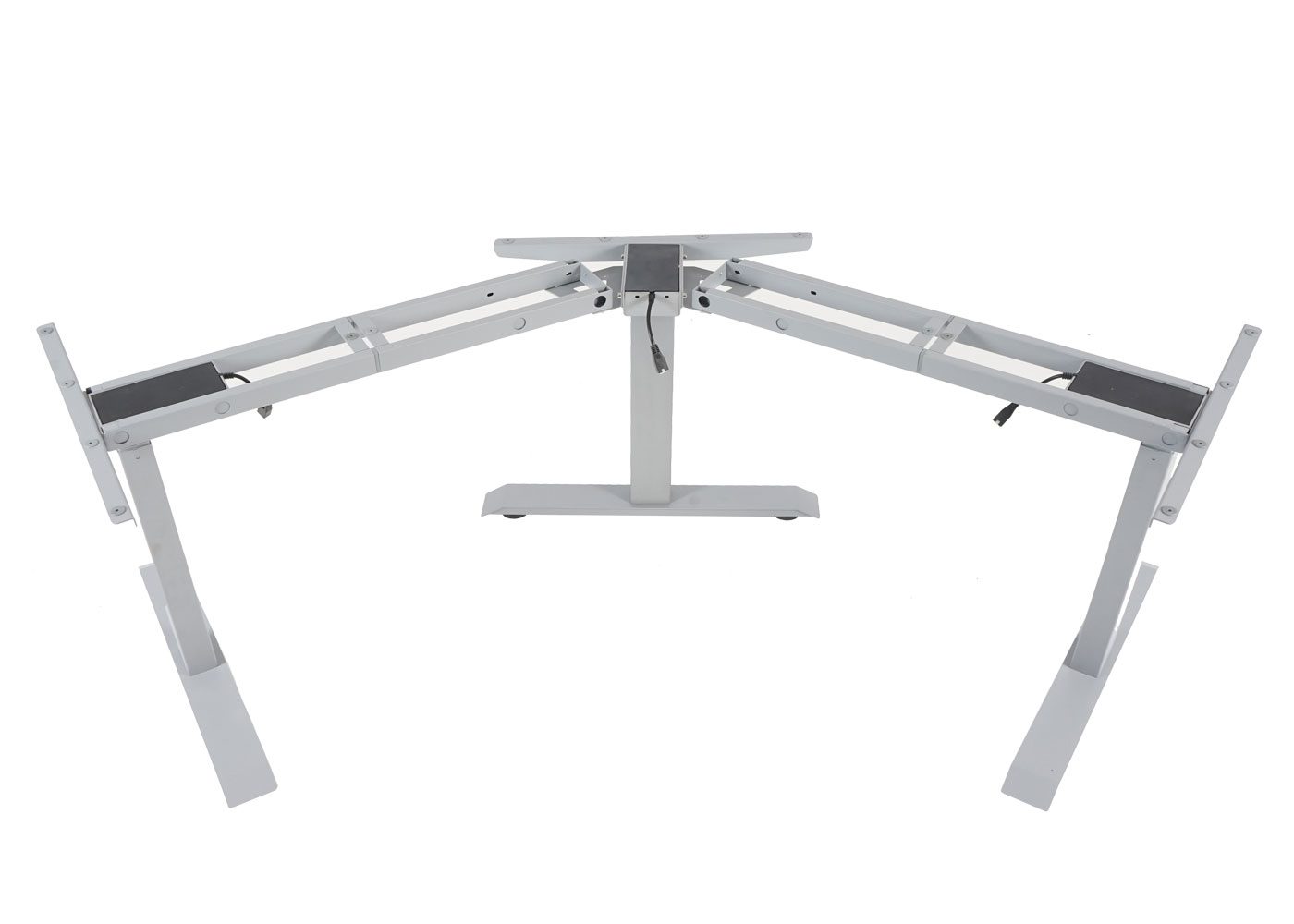 Sie möchten einen ganz individuellen und auch variablen Schreibtisch? Mit unserem höhenverstellbaren Gestell ist das kein Problem mehr. Durch die 3 Winkeleinstellungen lässt sich dieses praktische Gestell ganz nach Ihren Bedürfnissen mit Ihrer Tischplatte kombinieren. Ganz egal ob 90°, 120° oder 180° – dieses Gestell lässt keine Wünsche offen. Lassen Sie sich eine Tischplatte ganz nach Ihrem Platzangebot anfertigen und montieren Sie diese dann auf unserem Tischgestell. Dieses kann mithilfe dreier Motoren stufenlos verstellt werden. Dank der Memory-Funktion können Sie die vier meistgenutzten Positionen speichern, sodass nach den ersten Versuchen in verschiedenen Höhen nur noch programmiert werden muss. Mehr Beinfreiheit wird durch querstangenfreies Design gewährleistet.
