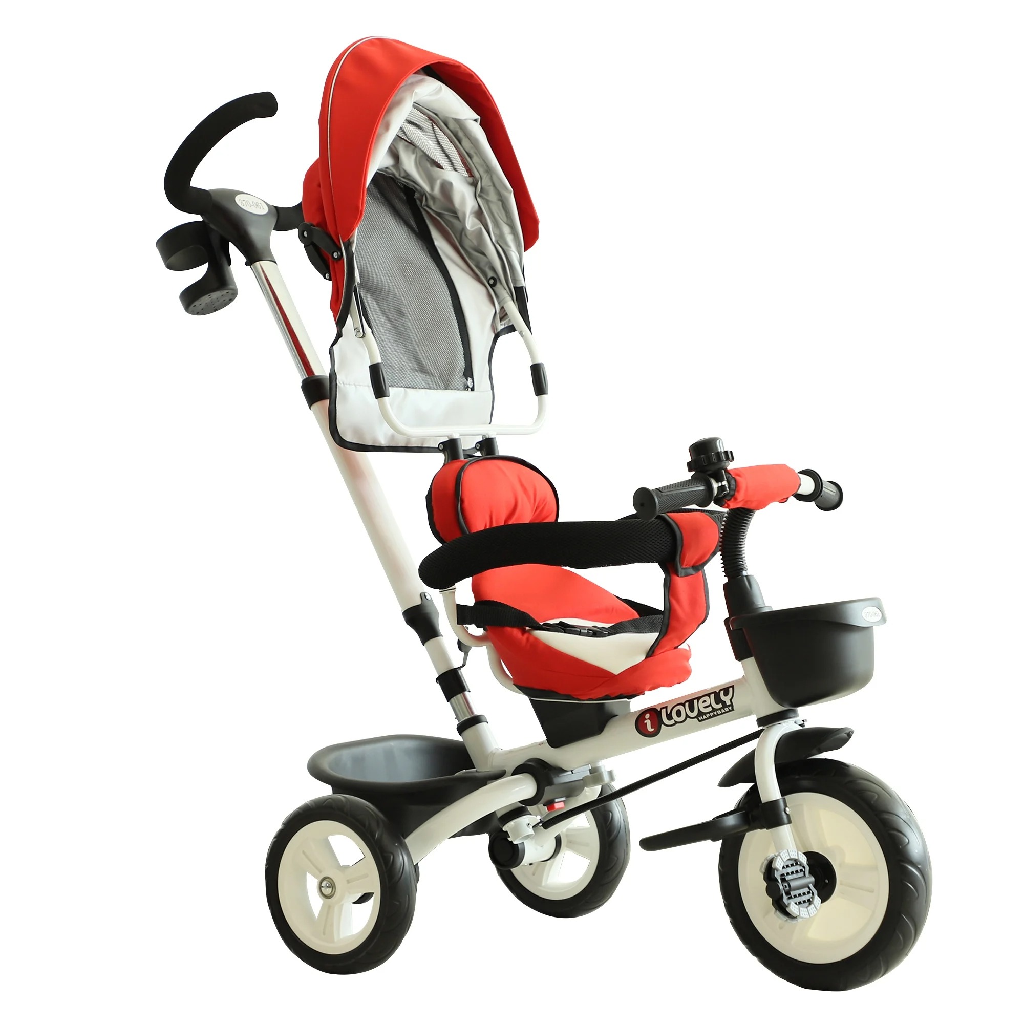 4-in-1 Kinderwagen Dreirad Buggy – Rot