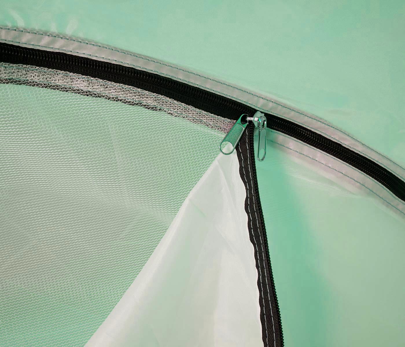 Das Zelt überzeugt durch eine hochwertige Verarbeitung und einen durchdachten Aufbau. Die Wassersäule von über 1500 mm sorgt nach DIN-Norm für zuverlässigen Schutz bei Regen. Die Belüftungsöffnung im Dach sowie das separat verschließbare Moskitonetz am Eingang bieten Komfort und Schutz vor Insekten. Durch das geringe Gewicht eignet sich das Zelt hervorragend für längere Wanderungen oder Campingausflüge. bei denen ein leichter und schneller Aufbau gefragt ist.