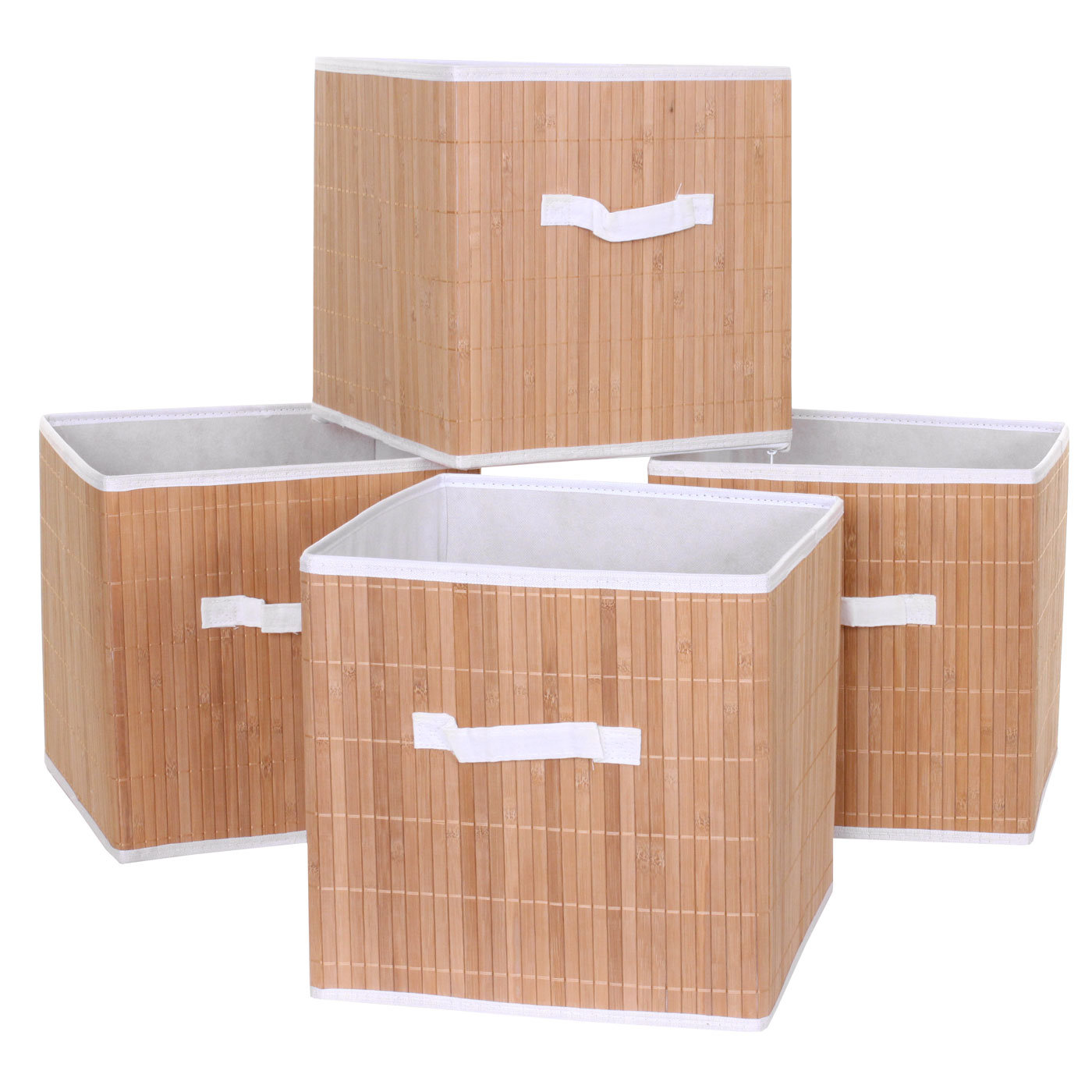 4x Ordnungsbox Aufbewahrungsbox, Bambus 32x32x32cm ~ naturfarben
