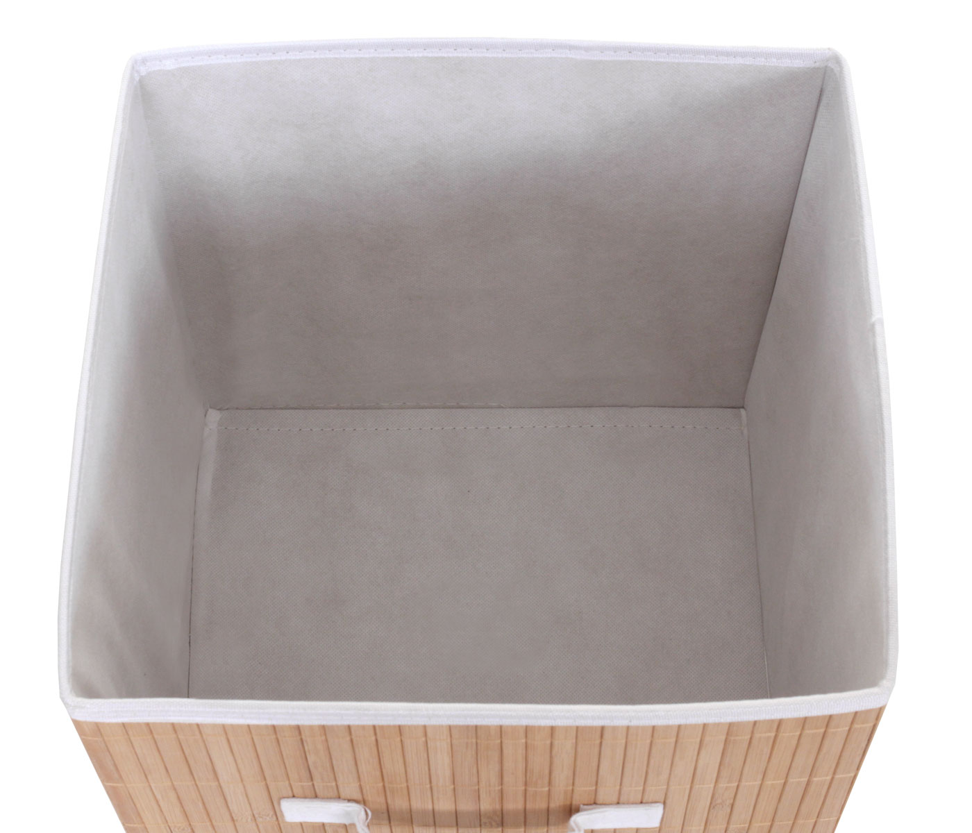 Diese praktischen Faltboxen aus Bambus mit Textileinsatz bieten Ihnen die Möglichkeit, Ihr Hab und Gut ordentlich und zugleich dekorativ aufzubewahren. Egal ob frei stehend, oder als Einsatz für Regale und Schränke, diese Faltboxen sind vielseitig einsetzbar. Sollten Sie die kleinen Helfer einmal nicht brauchen, sind sie leicht faltbar und so platzsparend zu verstauen, einfach den Reißverschluss an der Unterseite öffnen, Bodeneinsatz herausnehmen und zusammenfalten. Wenn Sie Ihre Wohnung also gleichzeitig aufräumen und dekorieren wollen, greifen Sie zu.