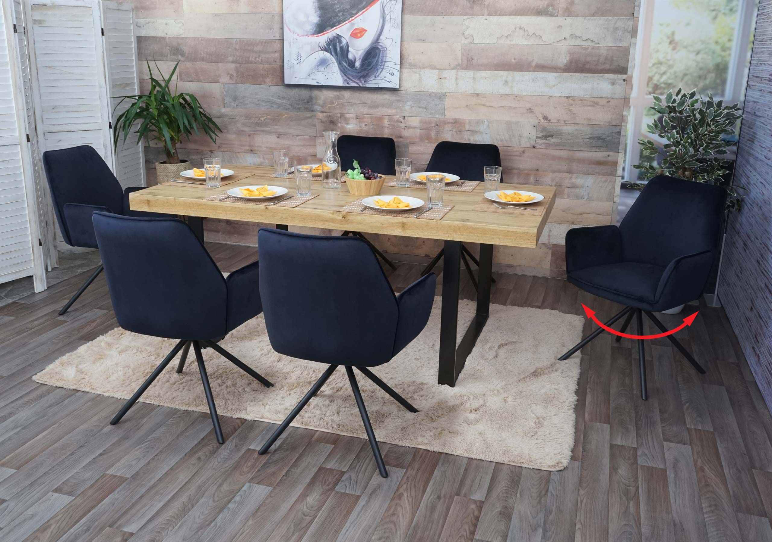 6er-Set Esszimmerstühle Samt drehbar Armlehne anthrazit-blau