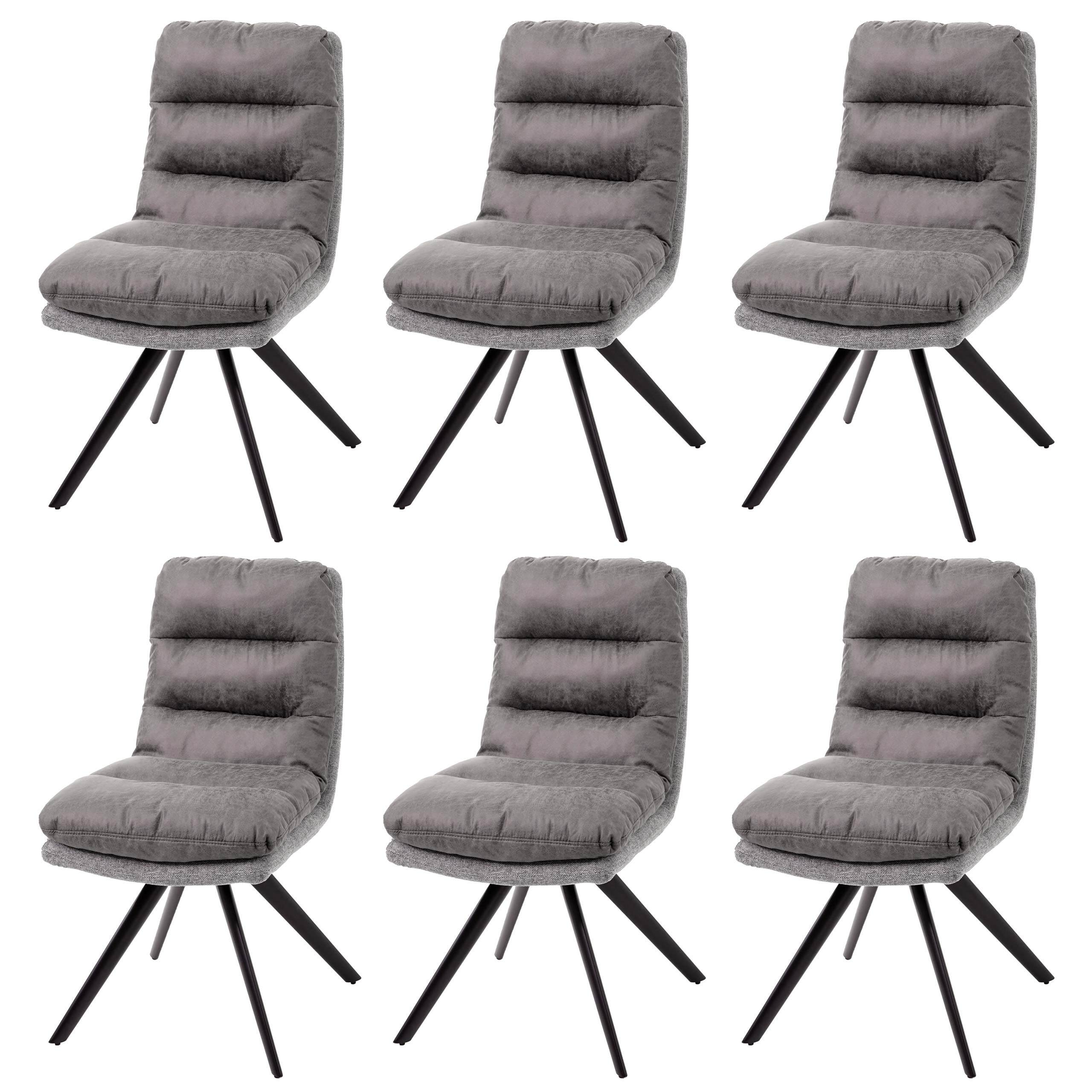 6x Esszimmerstuhl Küchenstuhl, drehbar Stoff/Textil ~ hellgrau-grau