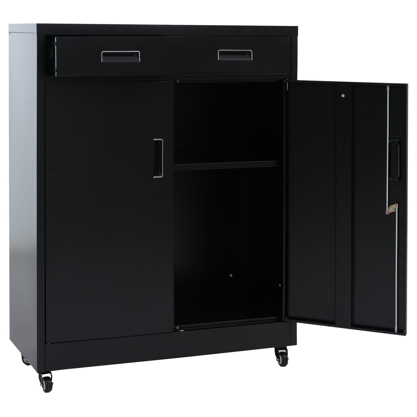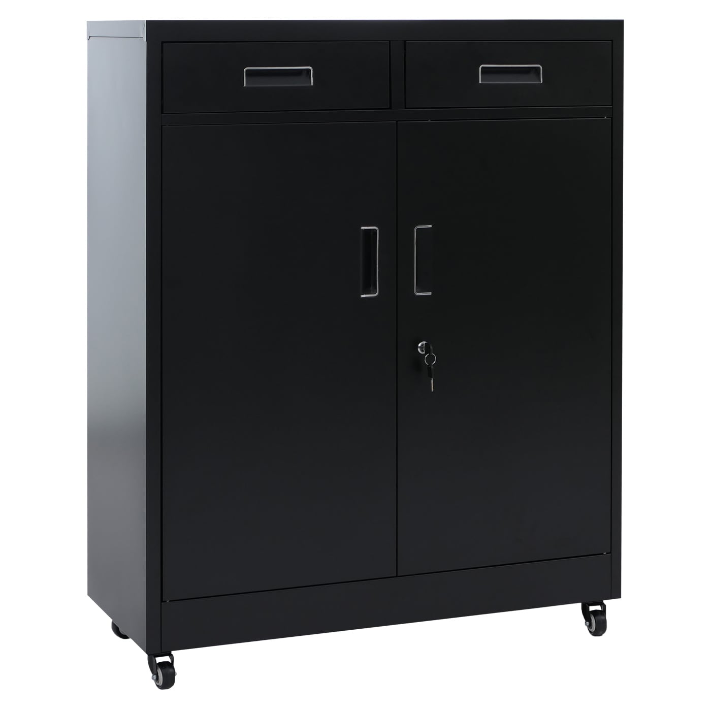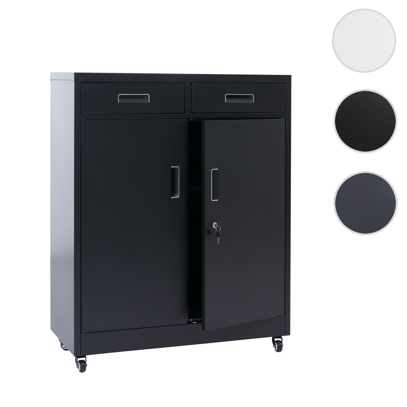 Abschliessbarer Aktenschrank aus Metall mit Rollen, schwarz
