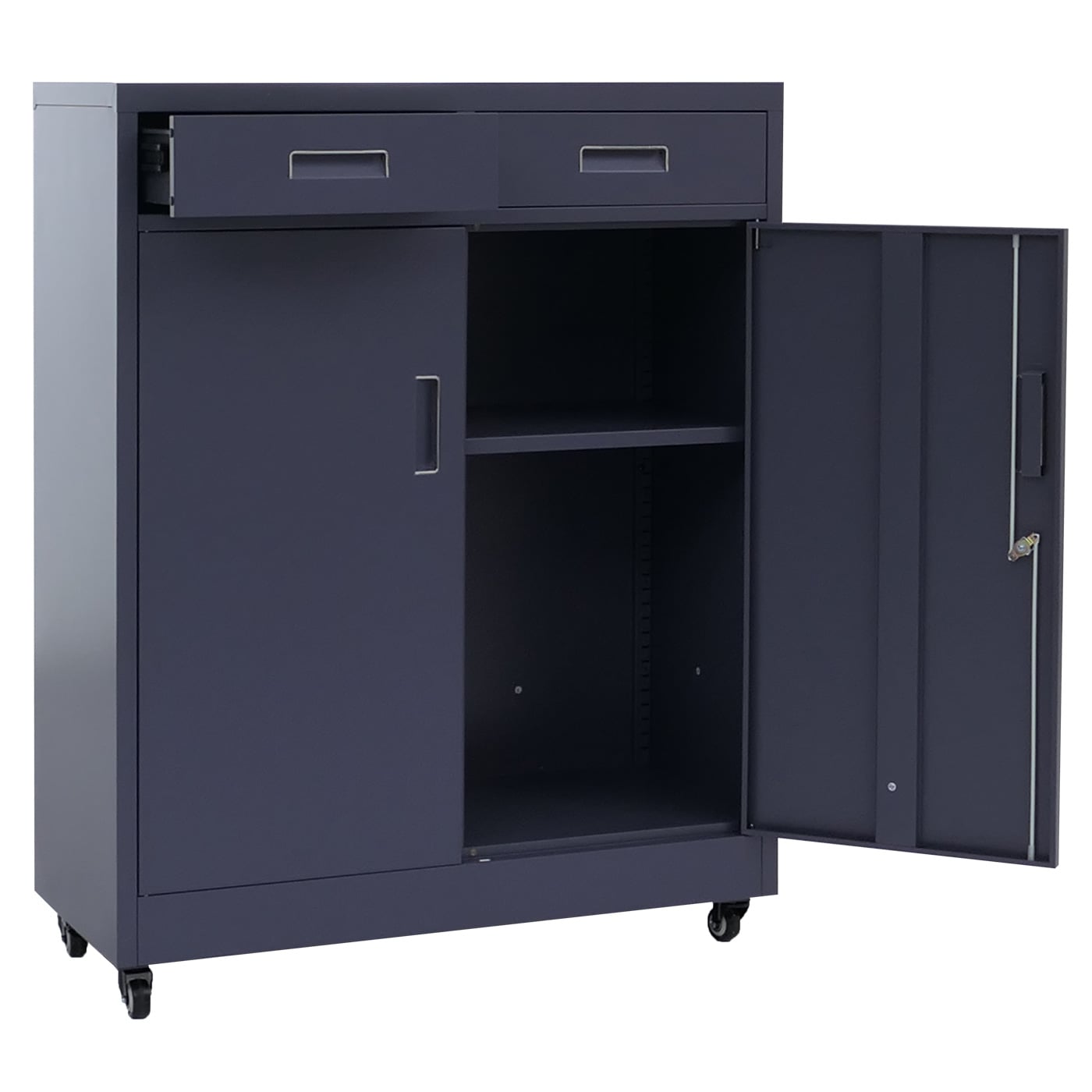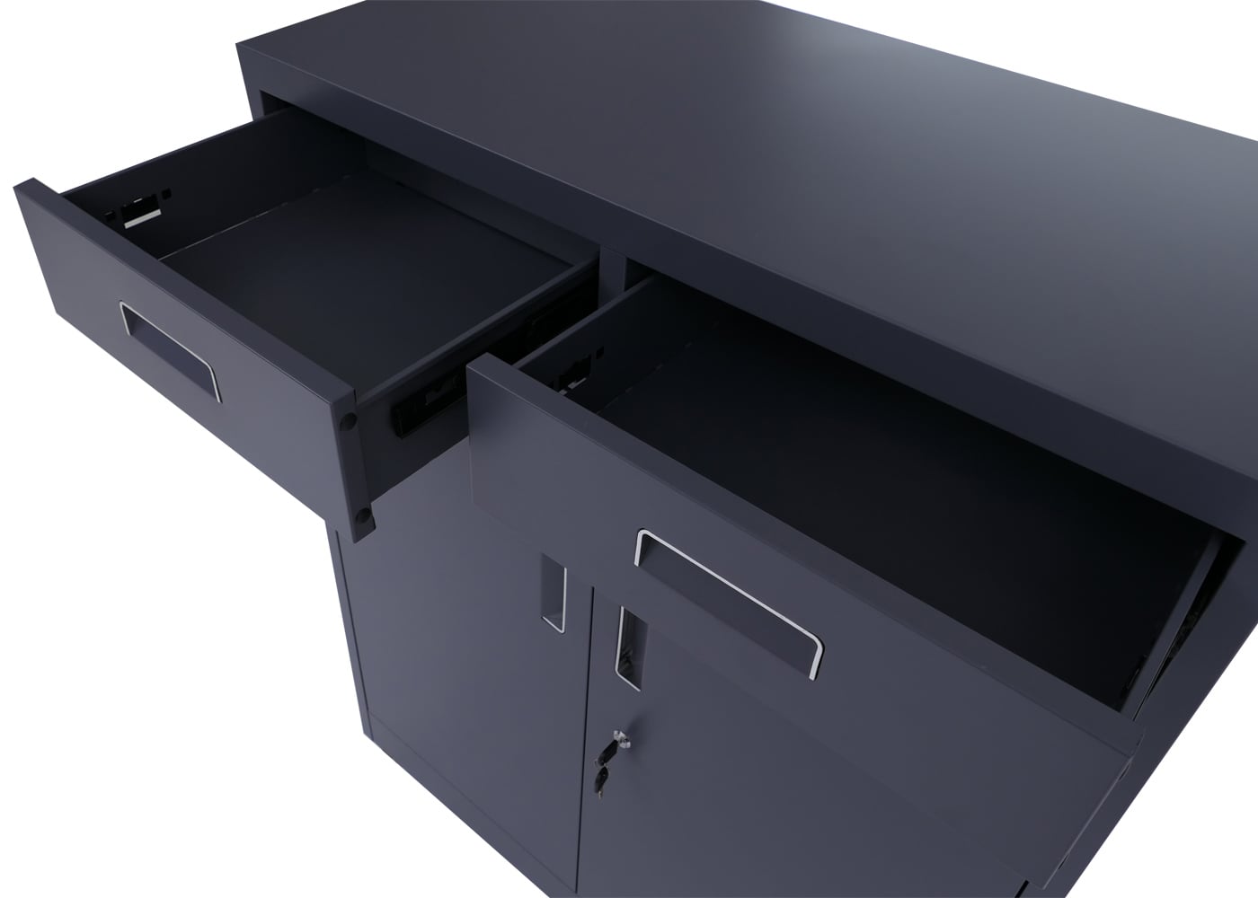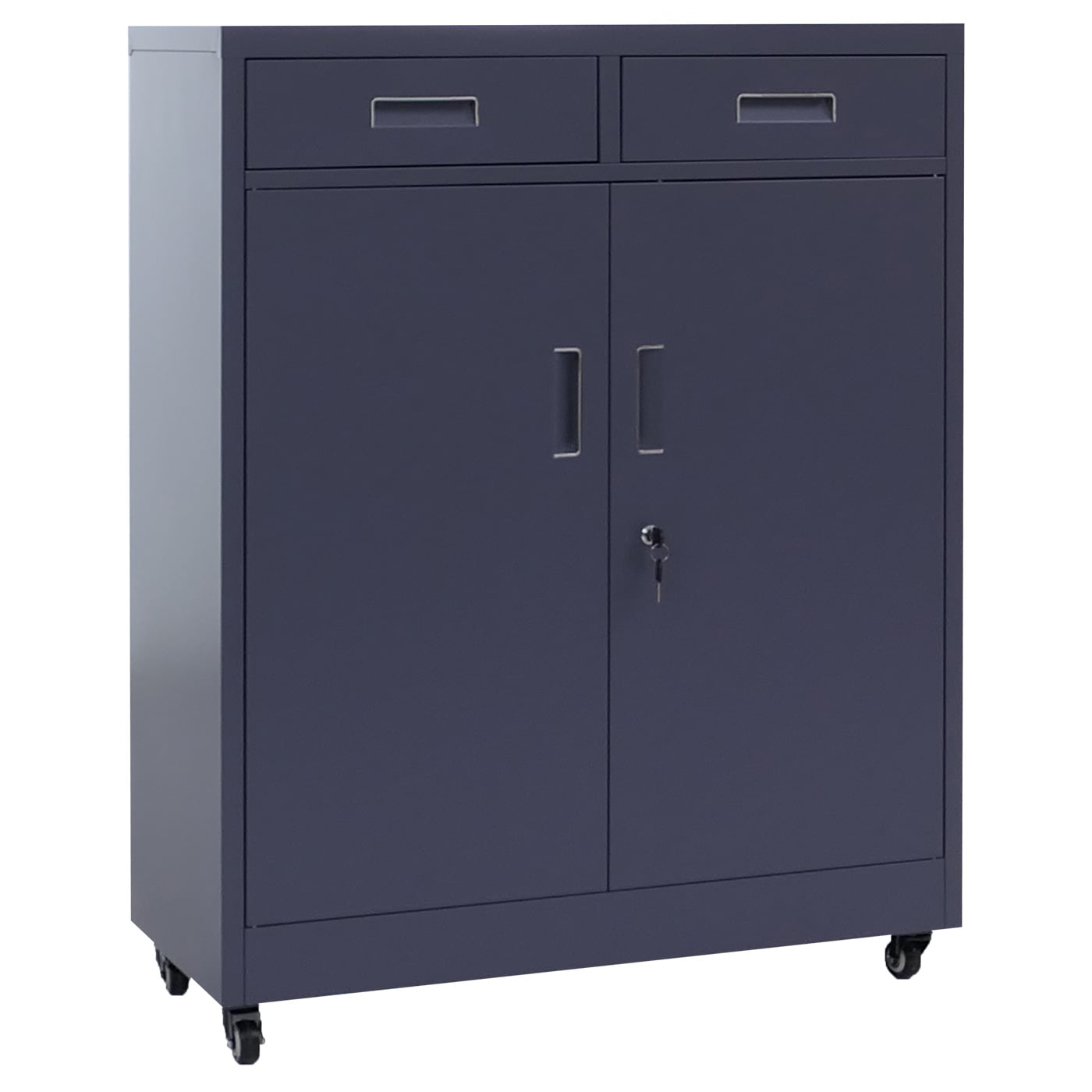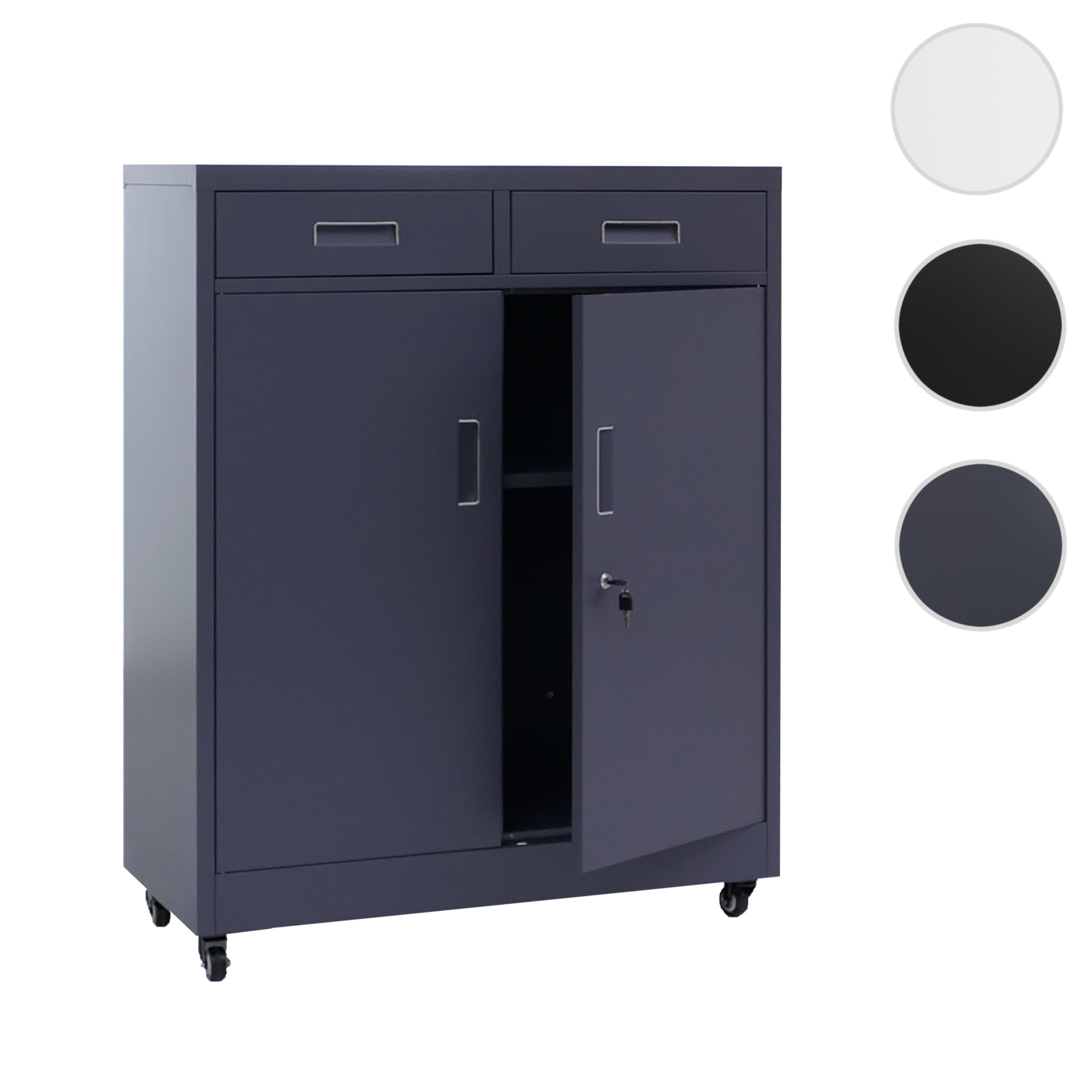 - 1 Aktenschrank mit zwei Türen. zwei Schubladen. Regalboden und Schlüssel