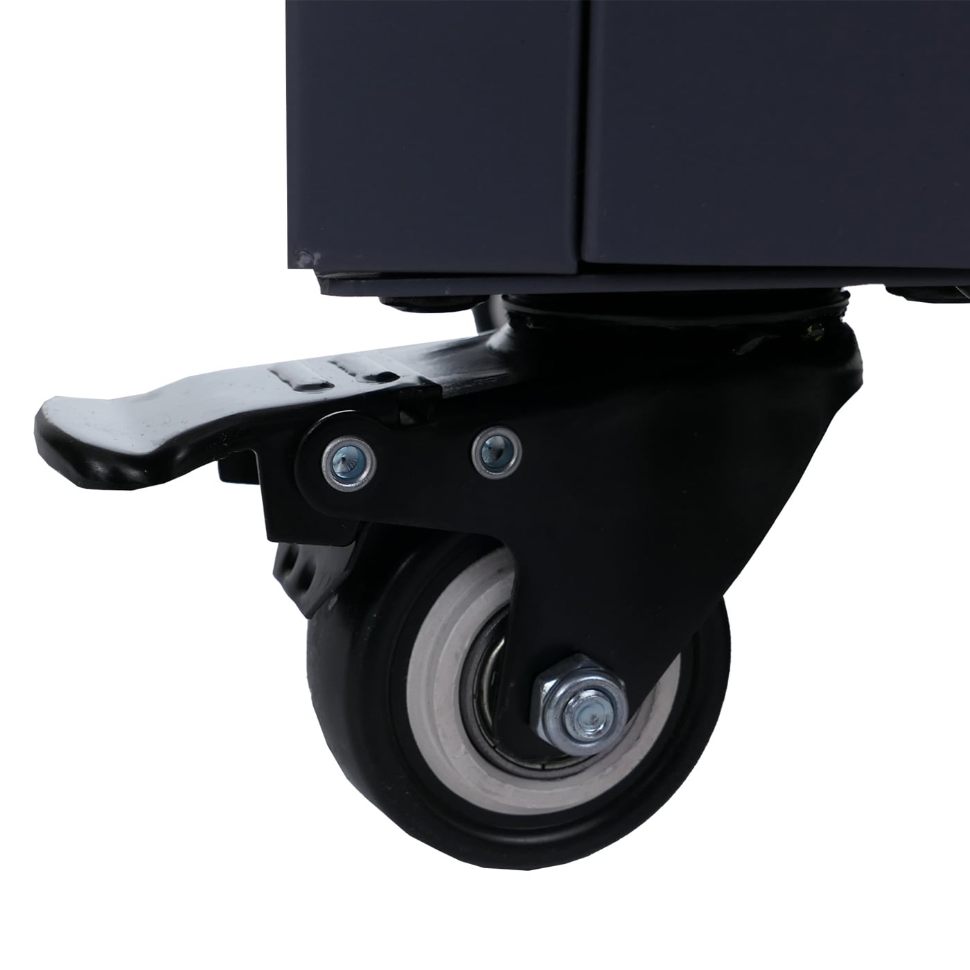 - Vier leichtgängige Rollen. davon zwei feststellbar für sicheren Stand