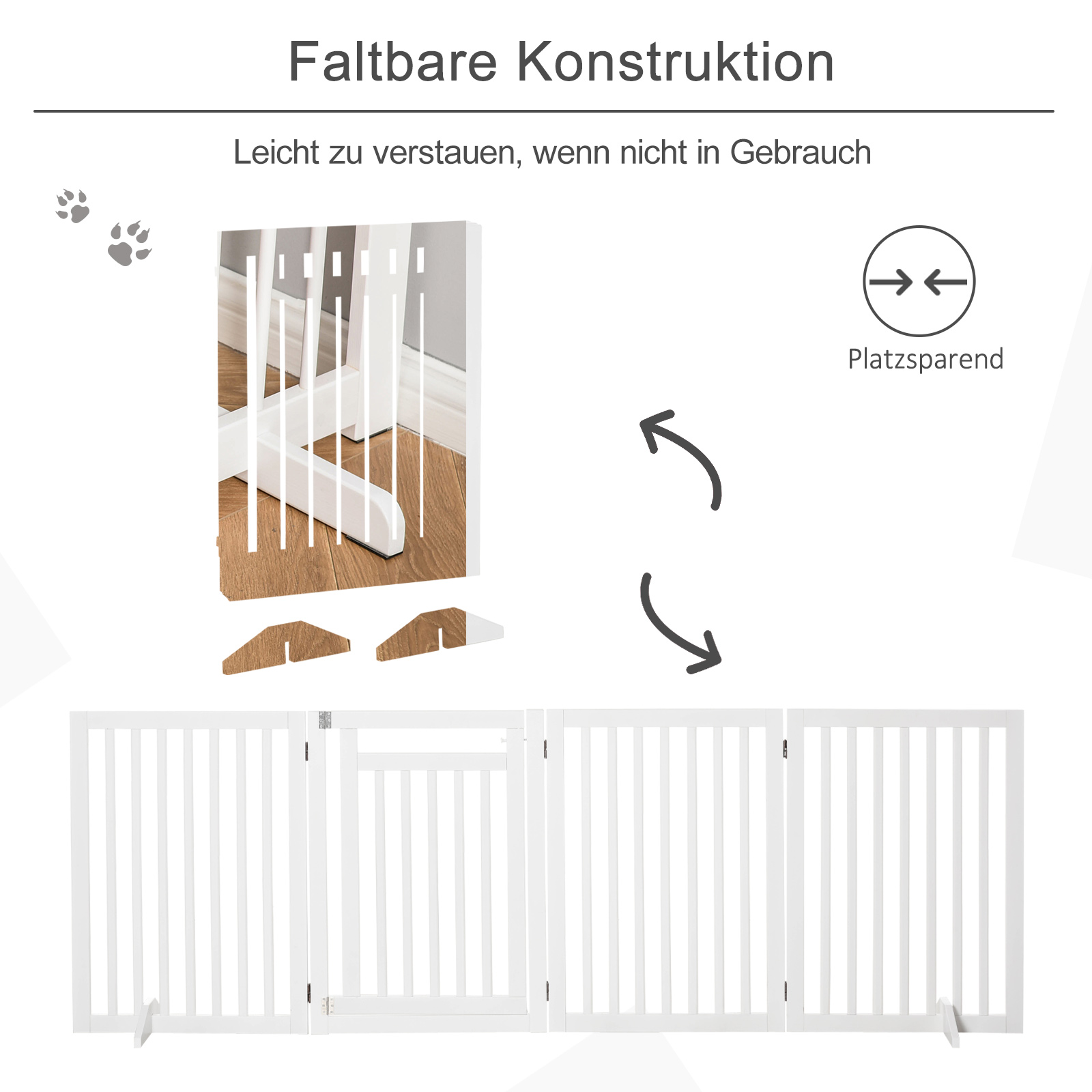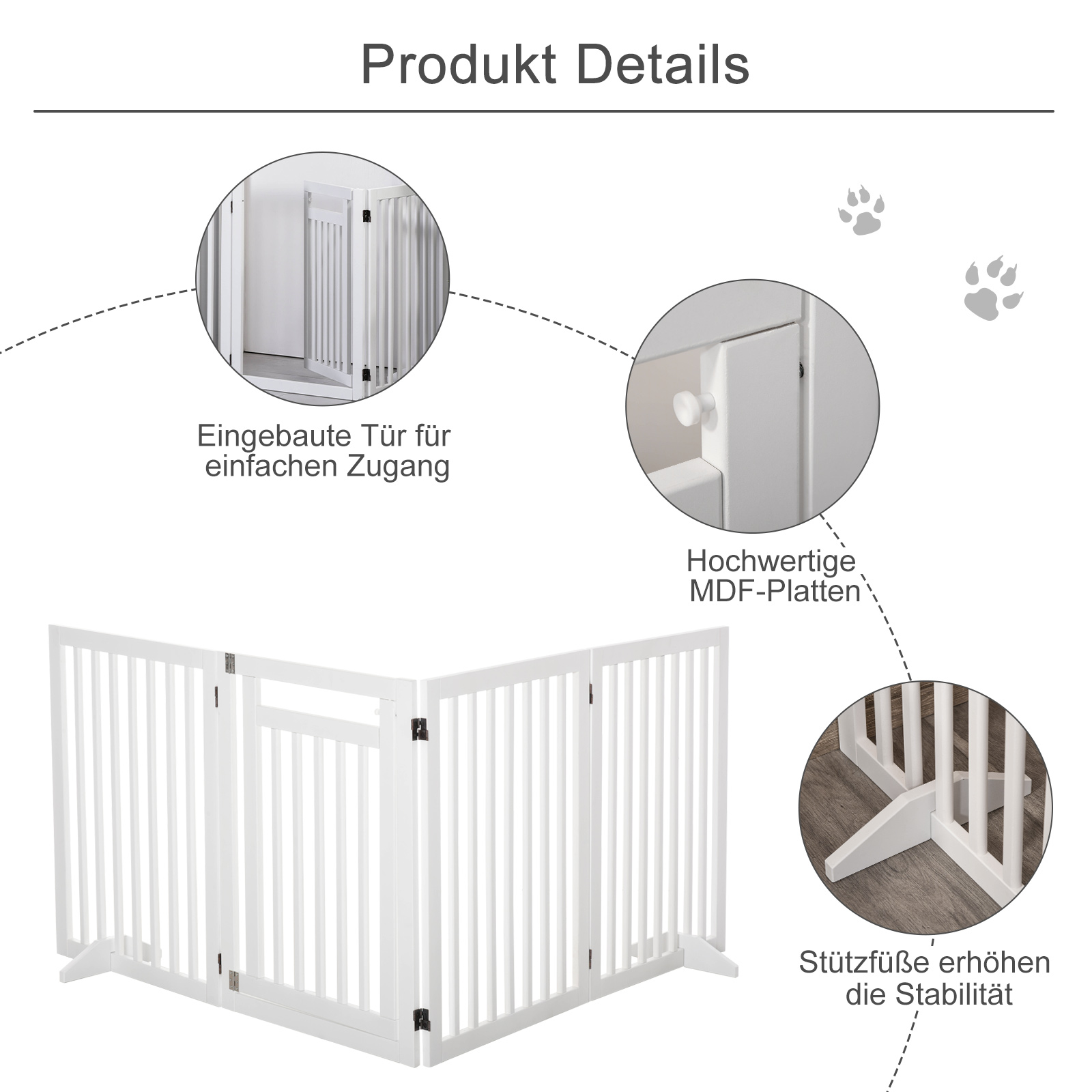 Der Holzzaun mit Tür ist eine sichere und effiziente Art, Ihre Haustiere zu schützen und eine Dekoration für Ihr Zuhause zu schaffen. Sein Design mit 4 Paneelen ermöglicht es, das Tor in verschiedene Formen zu falten. Eine Platte dient gleichzeitig als Tür, durch die Ihr Haustier leicht ein- und ausgehen kann. Das Tor lässt sich zusammenklappen und kann so leicht in engen Räumen verstaut werden, ohne zu viel Platz zu belegen.