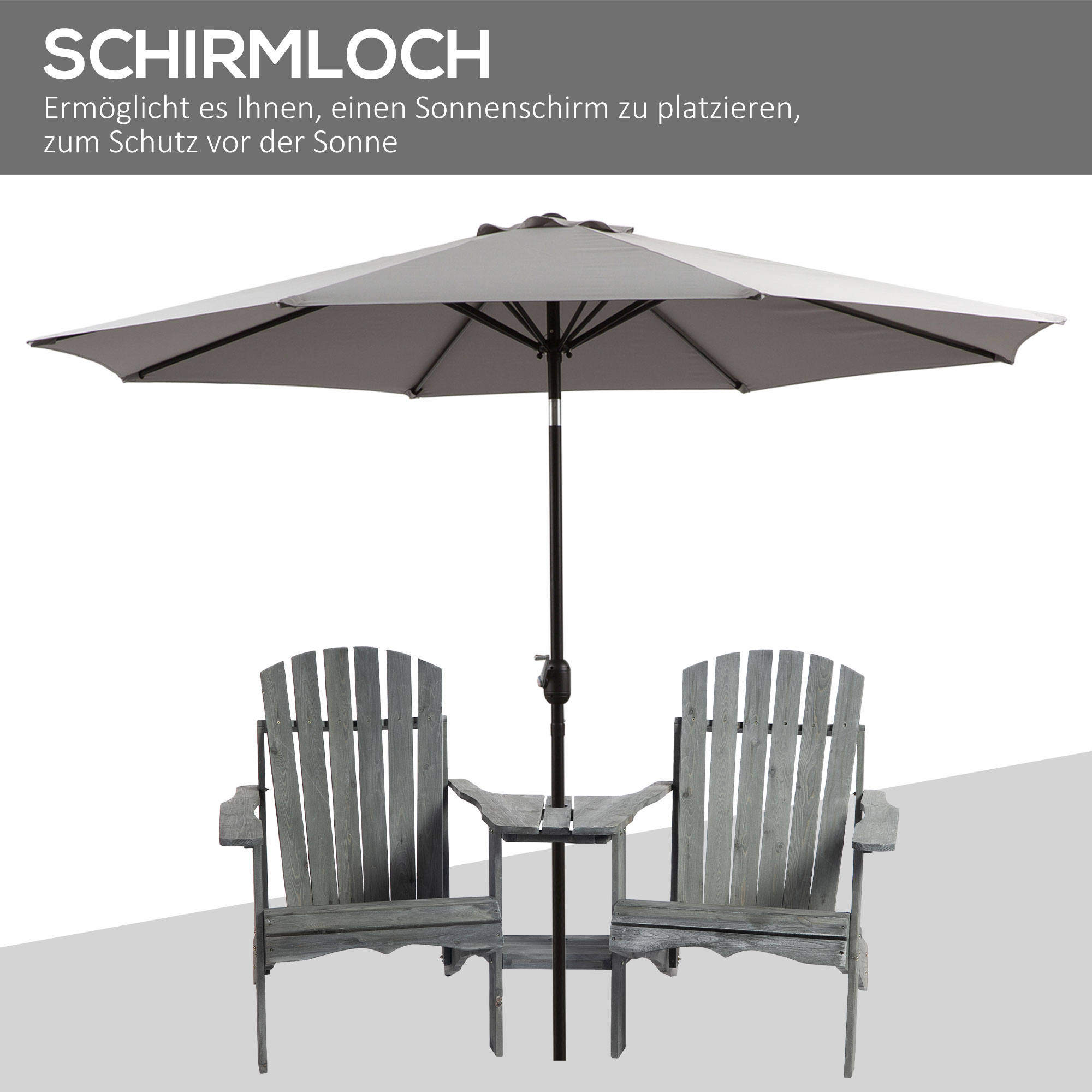 - Öffnung in der Mitte des Tisches für Sonnen- oder Regenschirm