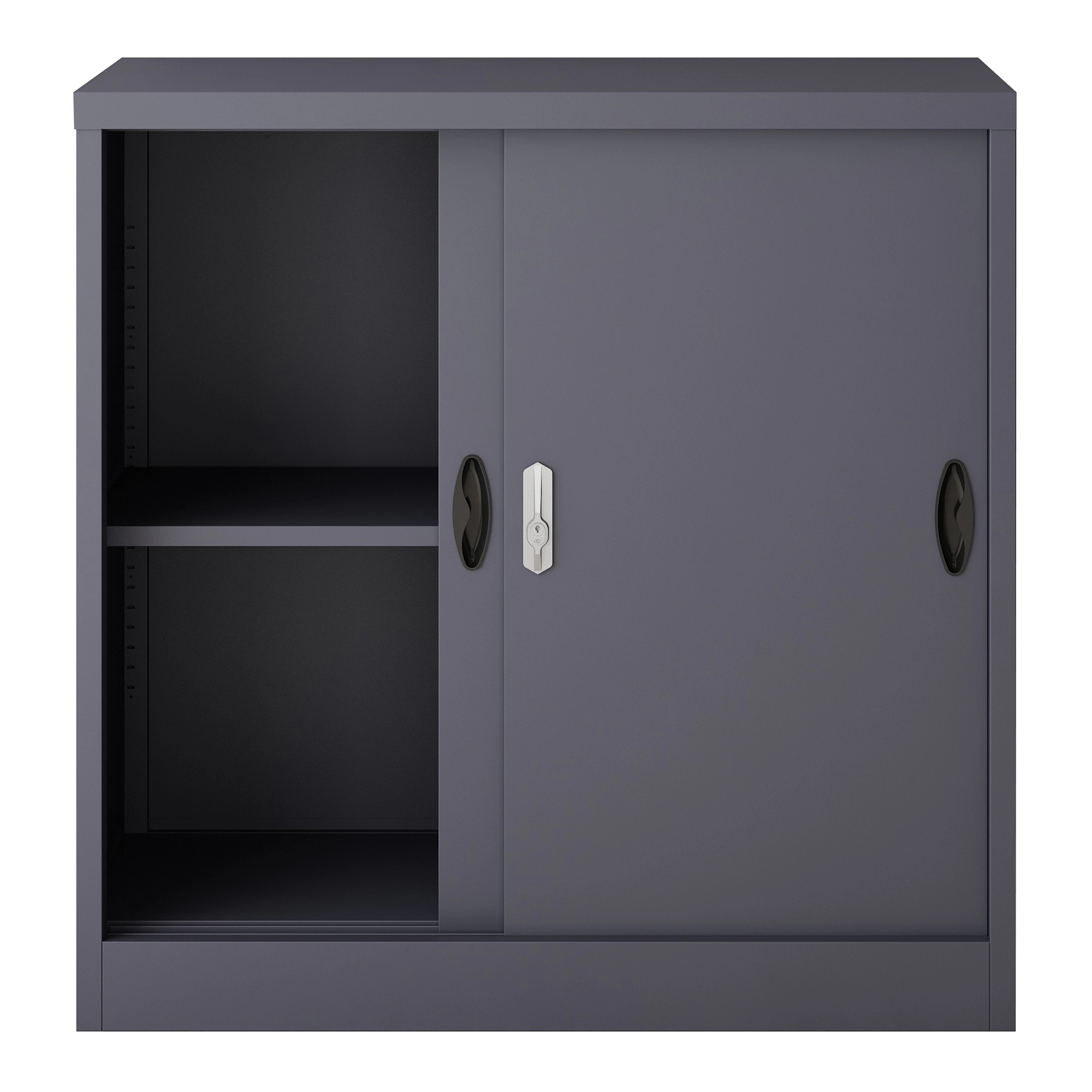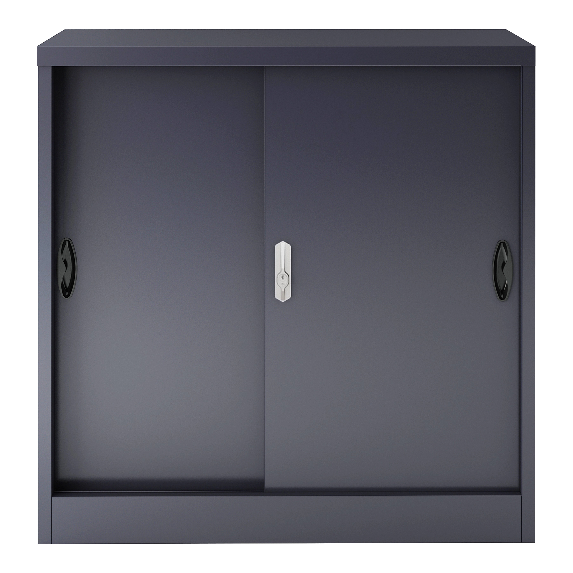 • Abschließbarer, robuster Metallschrank mit 2 Schiebetüren