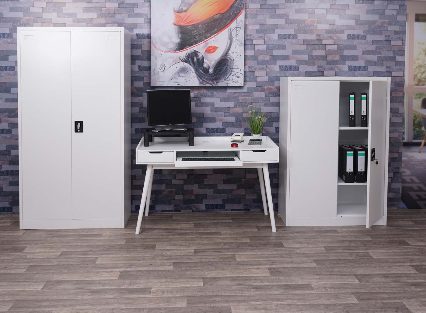 Aktenschrank Stahlschrank Büroschrank, 2 Türen 140x90cm weiss
