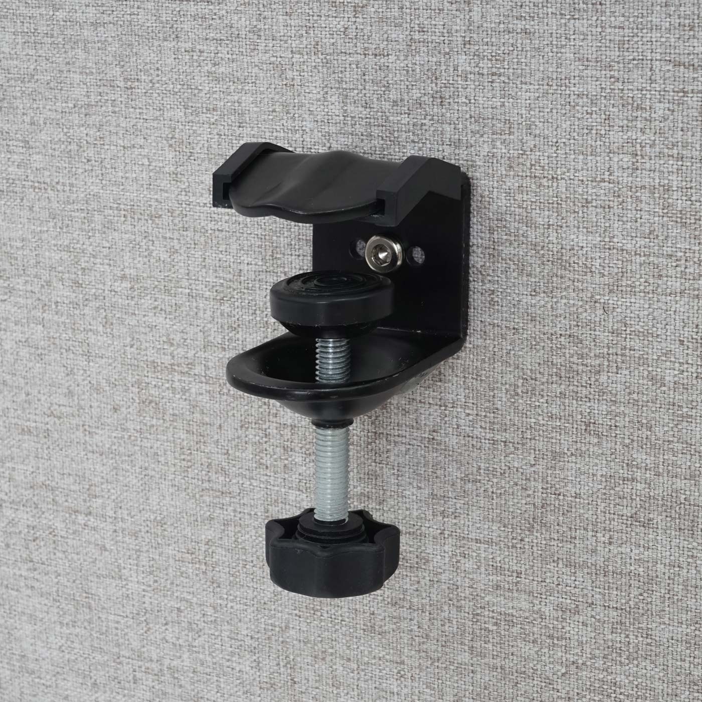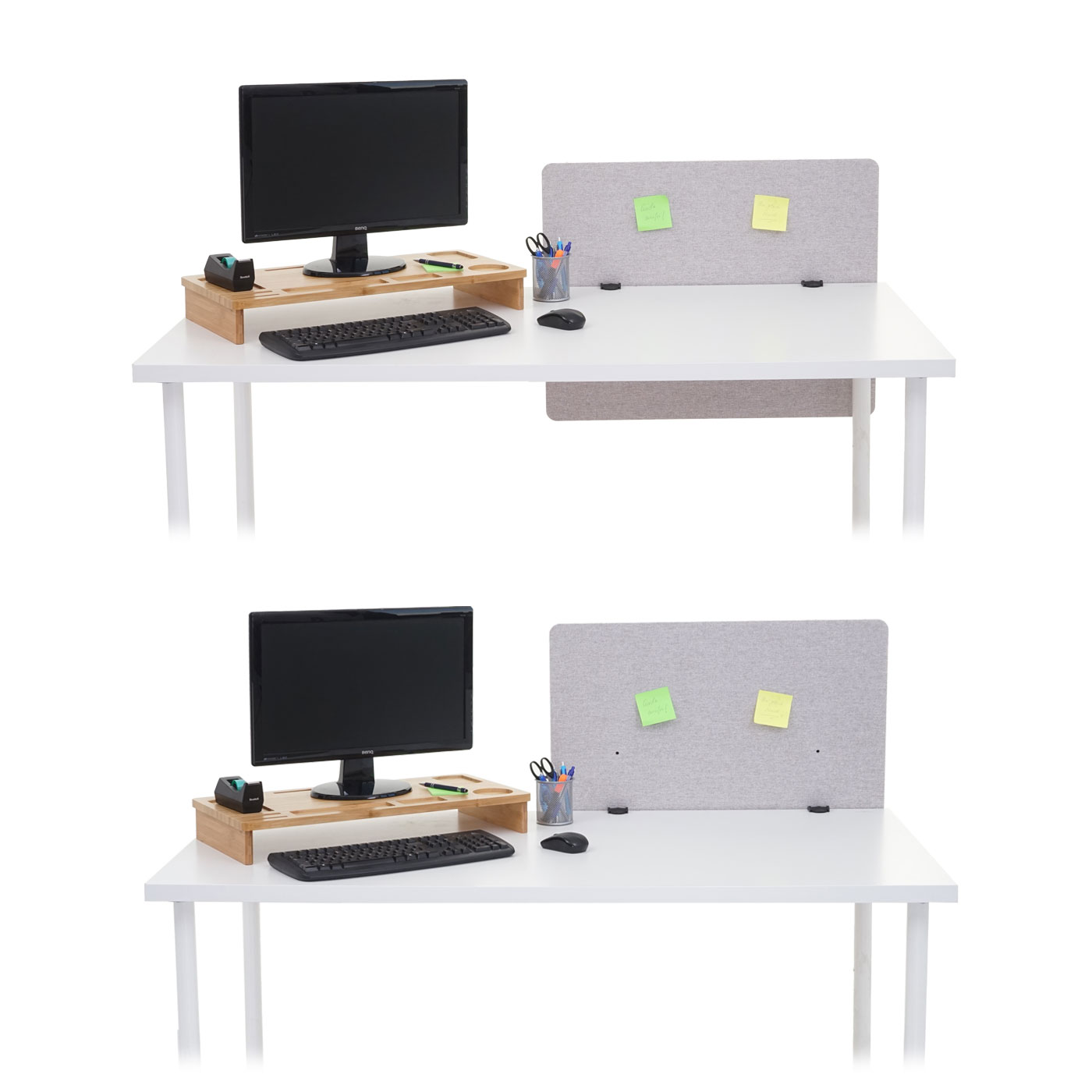 • Klemmen werden einfach an die Trennwand geschraubt und mit einer Sternschraube am Schreibtisch befestigt