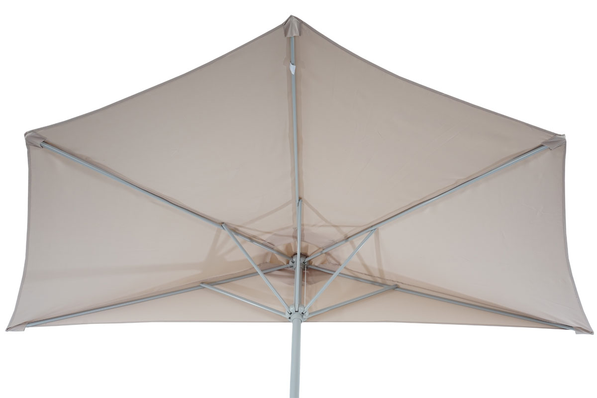 Gefertigt aus hochwertigen Materialien wie pulverbeschichtetem, rostfreiem Aluminium, bietet dieser Halbschirm sowohl Funktionalität als auch eine stilvolle Optik. Durch die Teleskopstreben ist er zudem besonders platzsparend und passt hervorragend zu den, separat oder im Set erhältlichen, Schirmständern.