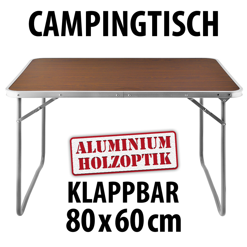 Aluminium – Campingtisch 80×60 cm klappbar mit MDF-Platte in Holzoptik