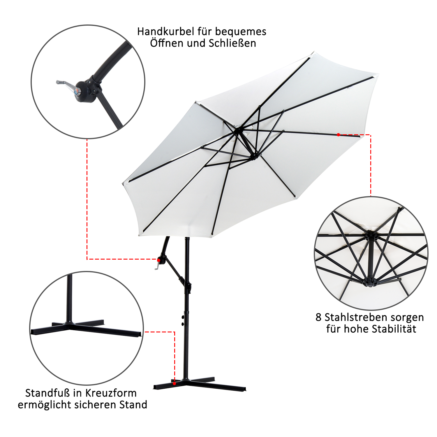 Ampelschirm Sonnenschirm ∅300cm mit Handkurbel creme