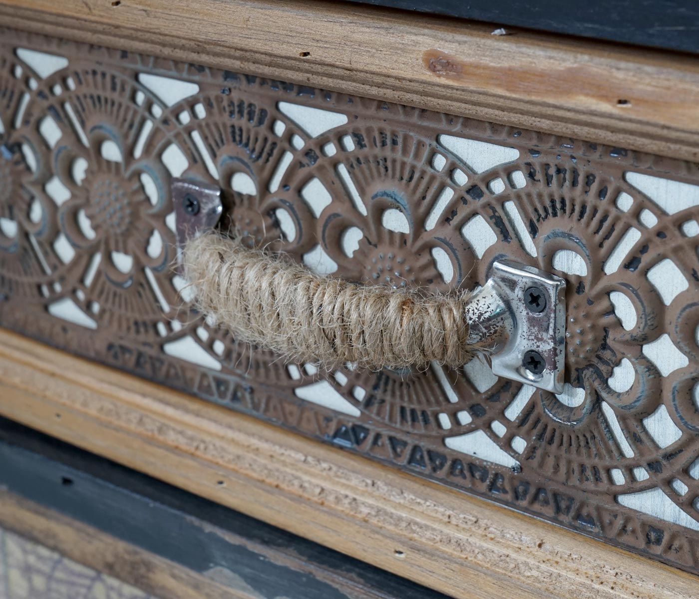 Die gebürstete Oberfläche verleiht jedem einzelnen unserer Shabby-Patchwork-Produkte einen ganz eigenen, individuellen Used-Look. Bei der Verarbeitung kann es zu kleinen Kratzern oder Macken kommen.