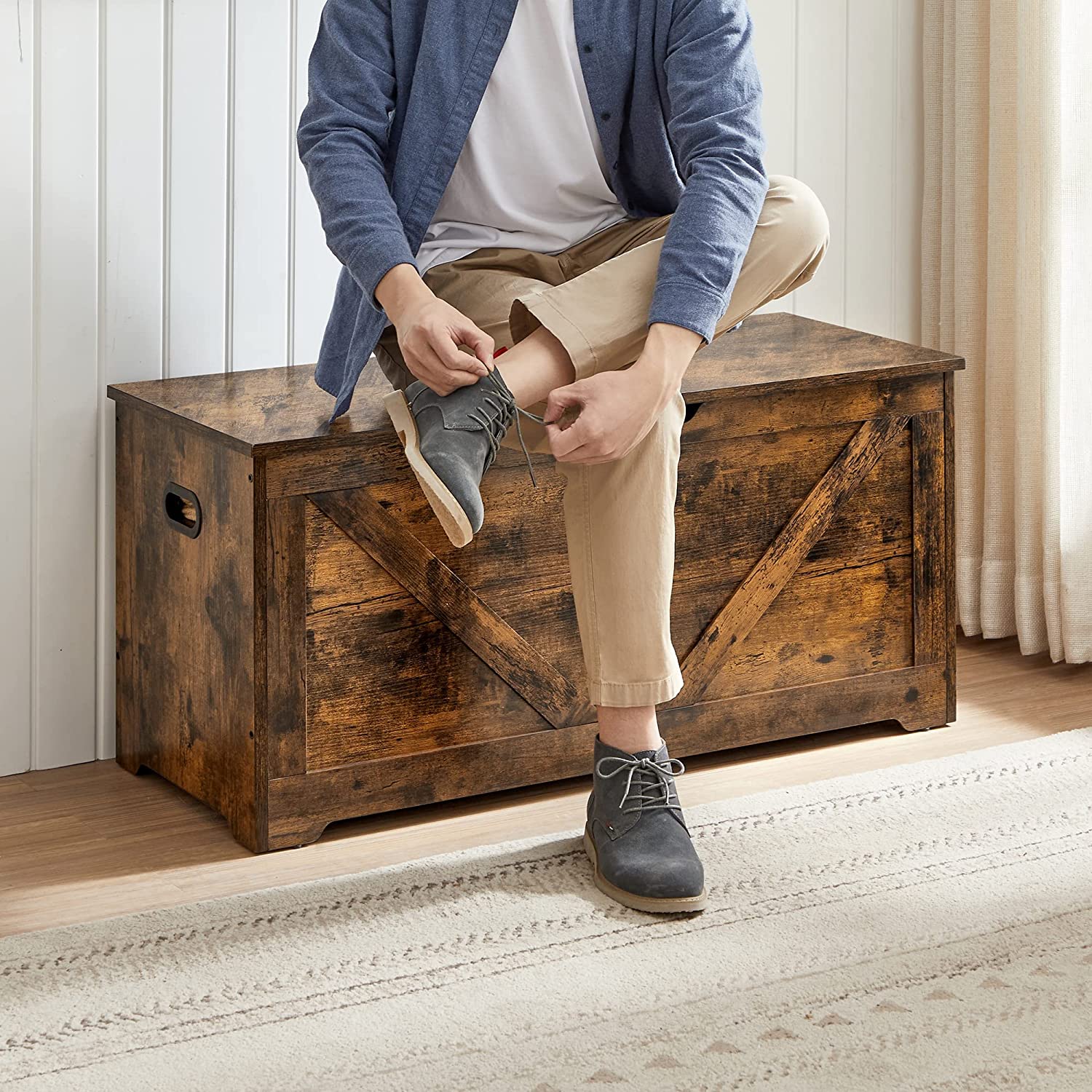 Bietet viel Platz für Decken, Kissen und Bücher. Stabile Konstruktion mit 2 Scharnieren für Sicherheit.