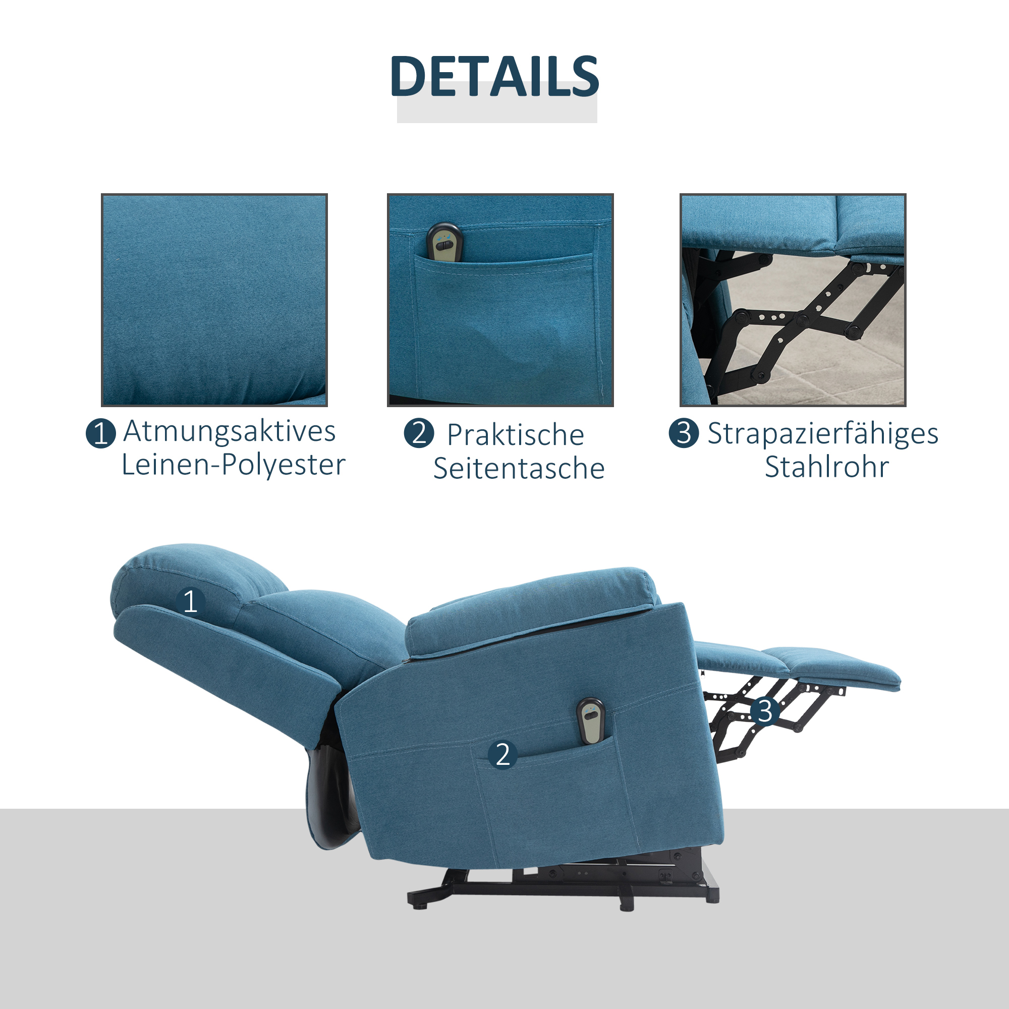 Machen Sie sich das Leben leichter mit dieser elektrischen Aufstehhilfe. Wenn Sie oder Ihr Angehöriger unter Mobiladelsproblemen leiden, ist dieser elektrische Sessel eine gute Wahl. Mit nur einem Knopfdruck können Sie mühelos vom Stehen in eine vollständig zurückgelehnte Position wechseln. Die weiche Polsterung und das Obermaterial in Leinenoptik sorgen für einen außergewöhnlichen Komfort und viel Entspannung.