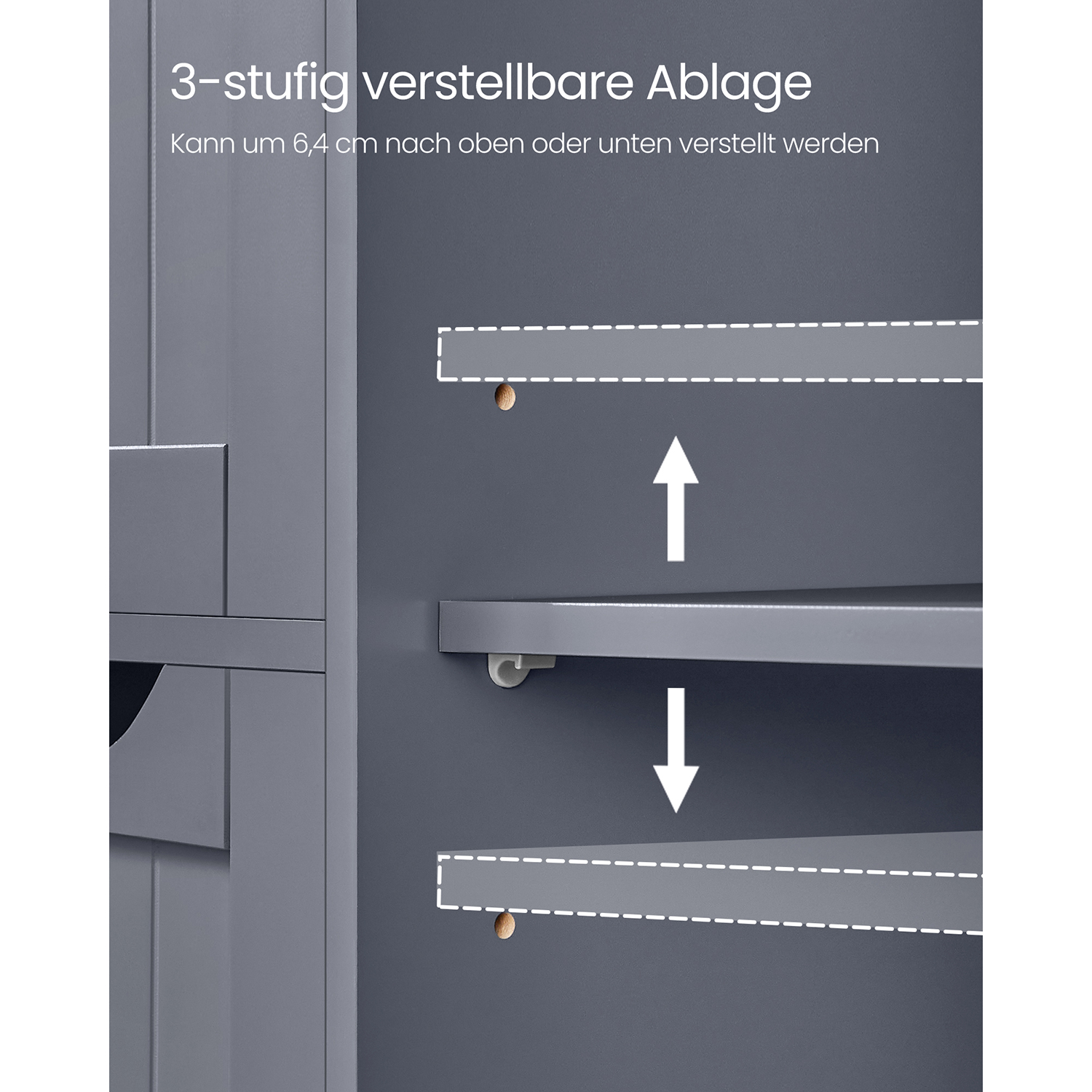 Dieser elegante Badezimmer-Bodenschrank in schlichtem Grau bietet eine clevere Lösung für kategorisierte Aufbewahrung in kleinen Räumen. Sein durchdachtes Design kombiniert Funktionalität mit Stil und passt sich nahtlos verschiedenen Einrichtungsstilen an.