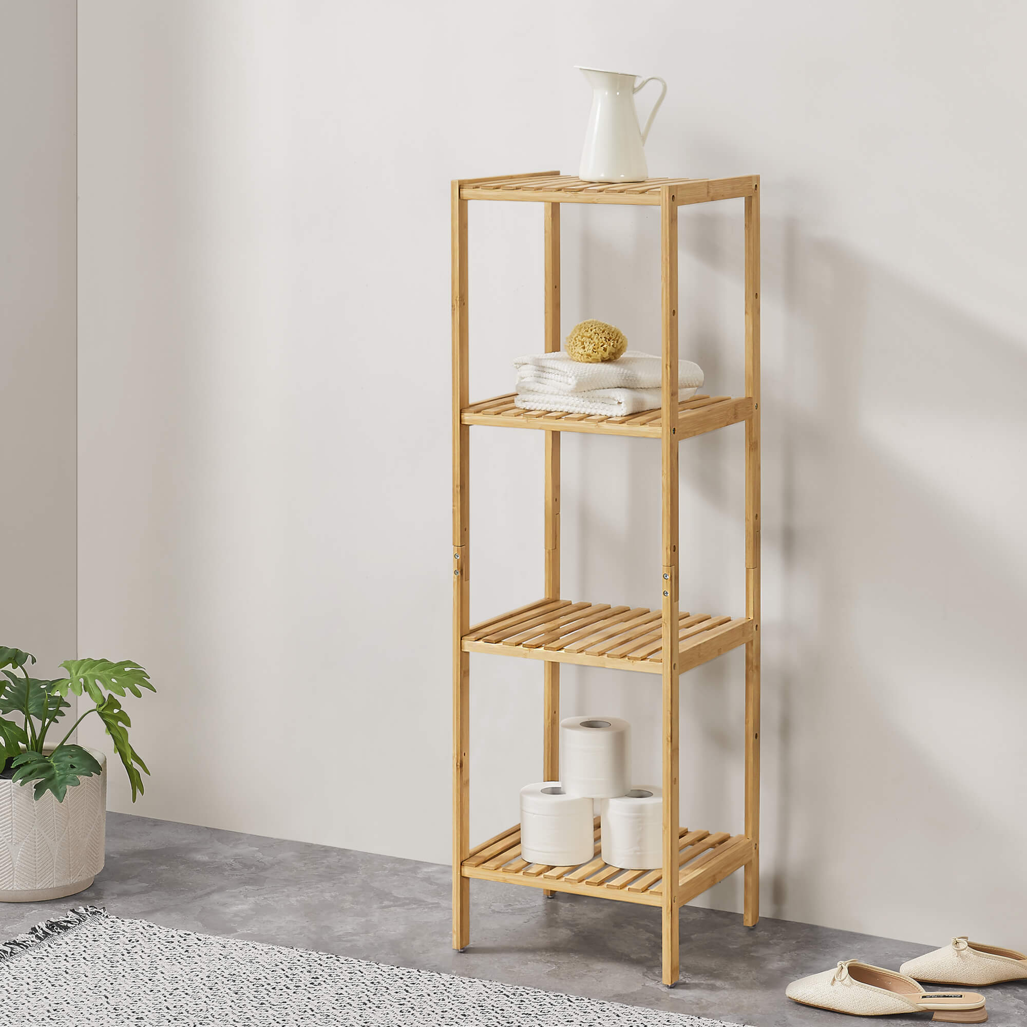 Das elegante und praktische Holzregal ist ideal für Ihren Haushalt. Es kann beispielsweise als Bad-, Küchen oder Lagerregal dienen.