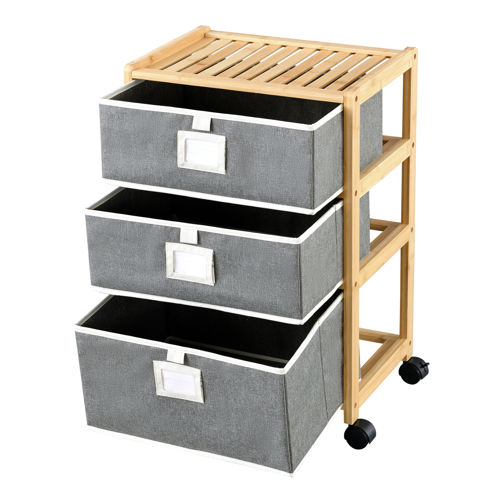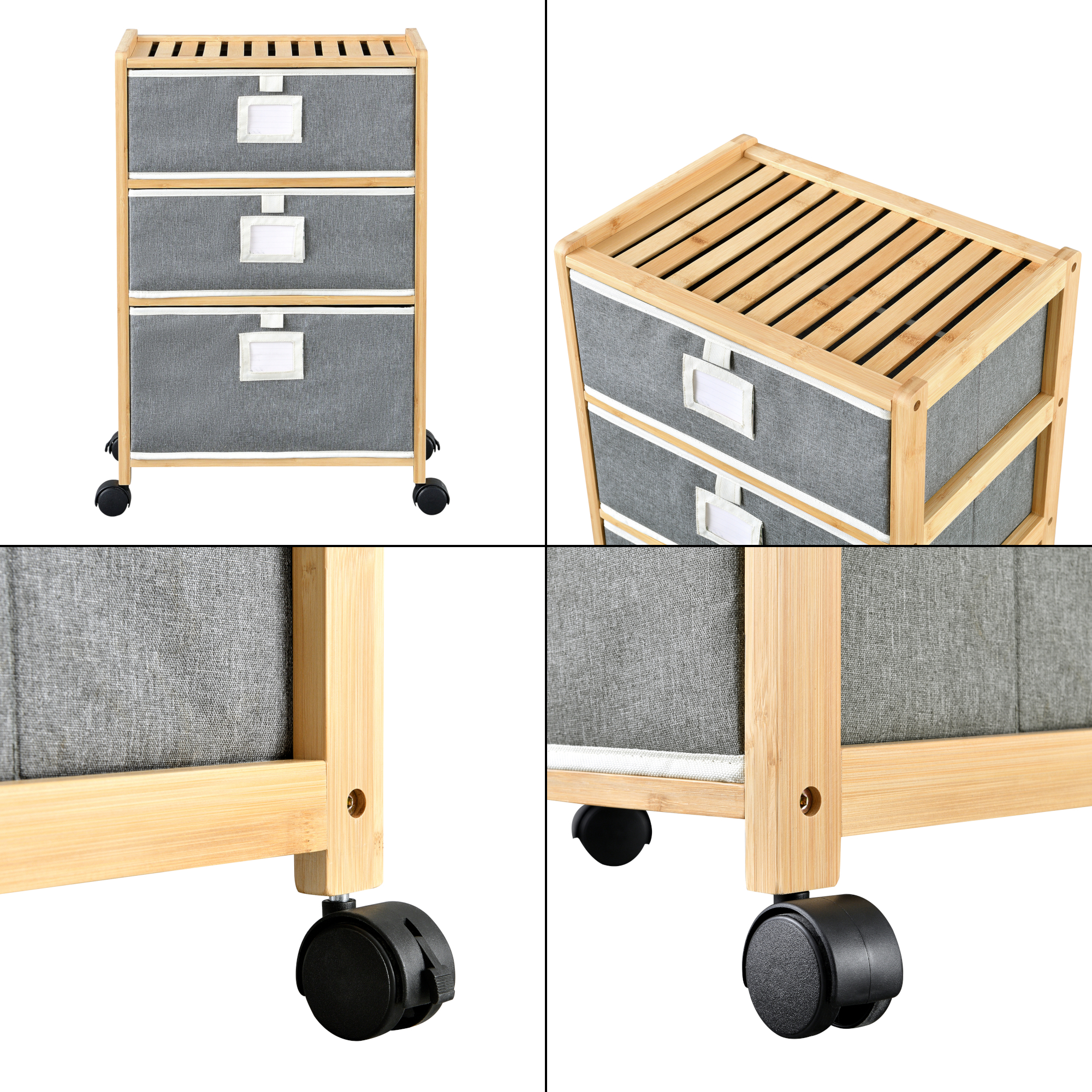 Bambus Beistelltisch Noorliit mit 3 Schubladen rollbar