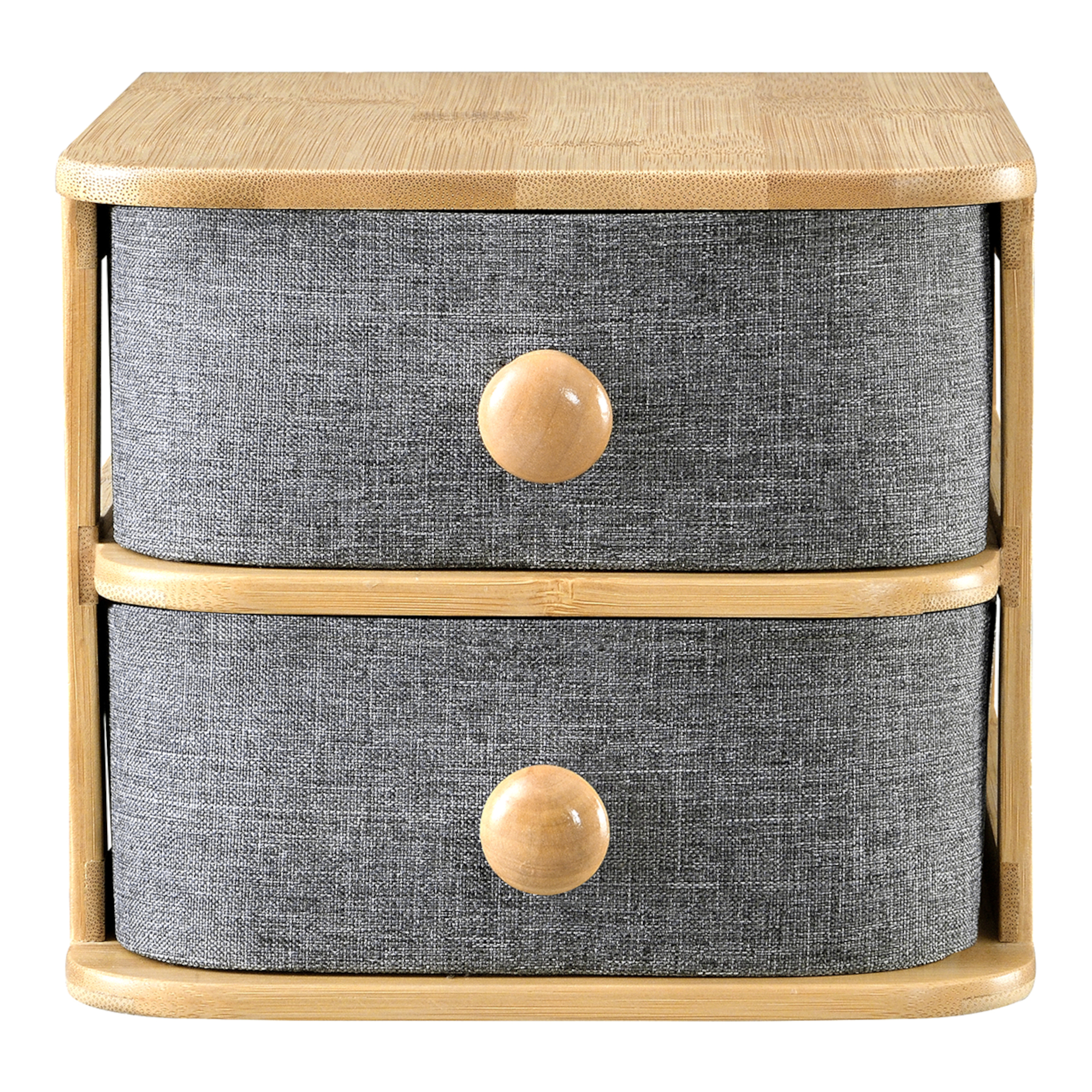 Mit dieser praktischen Schubladenbox sorgen Sie für Ordnung und Übersicht auf Ihrem Schreibtisch. Der Tischorganizer verfügt über 2 Schubfächer, zum Verstauen von bpsw. Stiften, Scheren, Kleber und sämtlichen anderen Büroutensilien. Natürlich können auch Make-Up Produkte, Schmuck oder andere Gegenstände platzsparend verstaut werden.